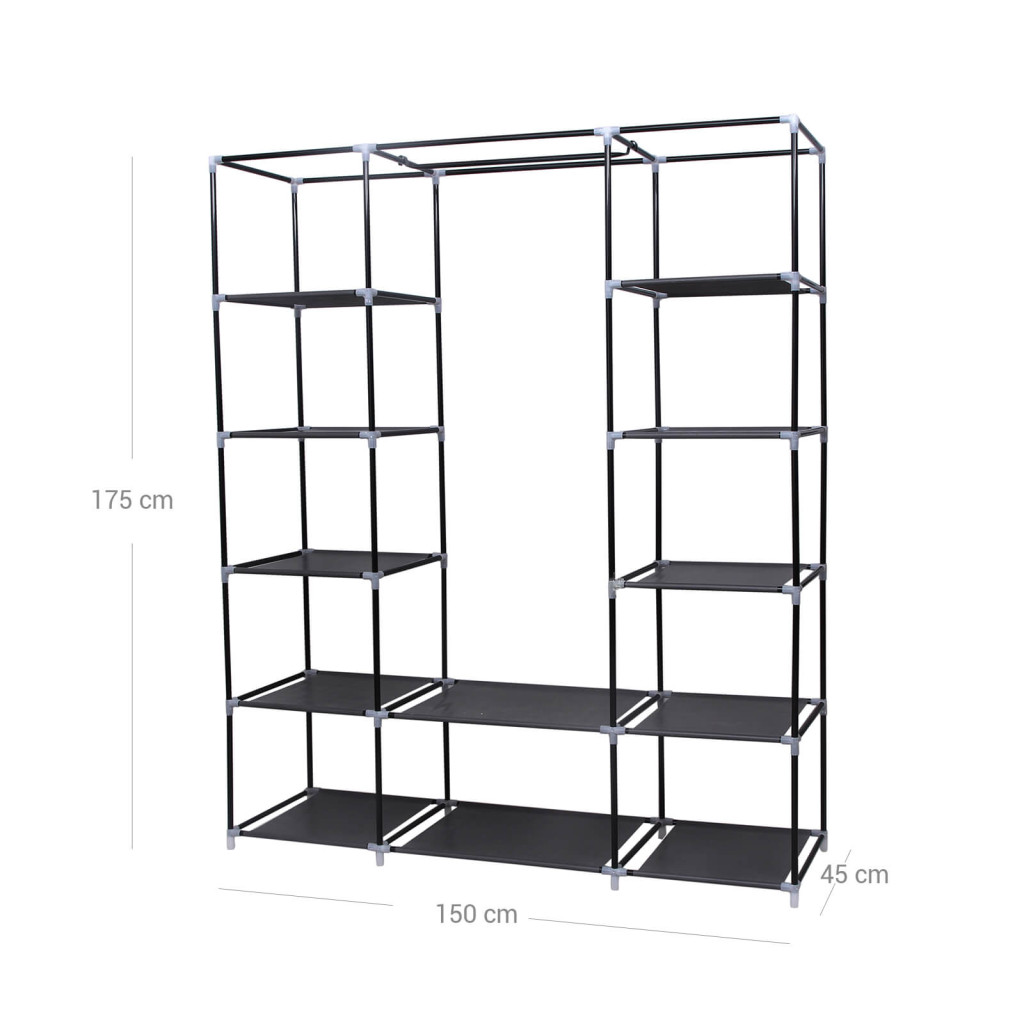 SONGMICS Hordozható Ruhásszekrény Fekete Szövet Tárolórendszer