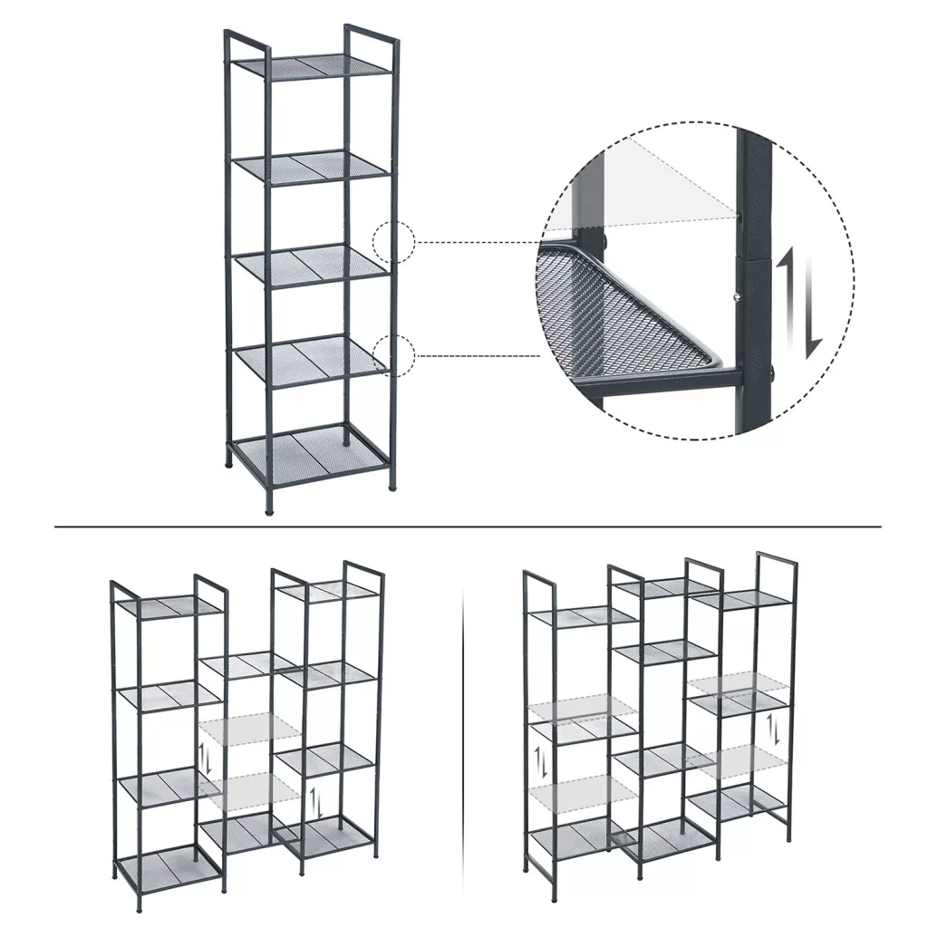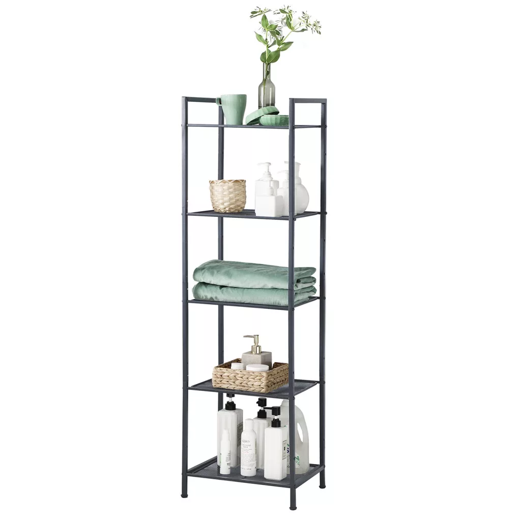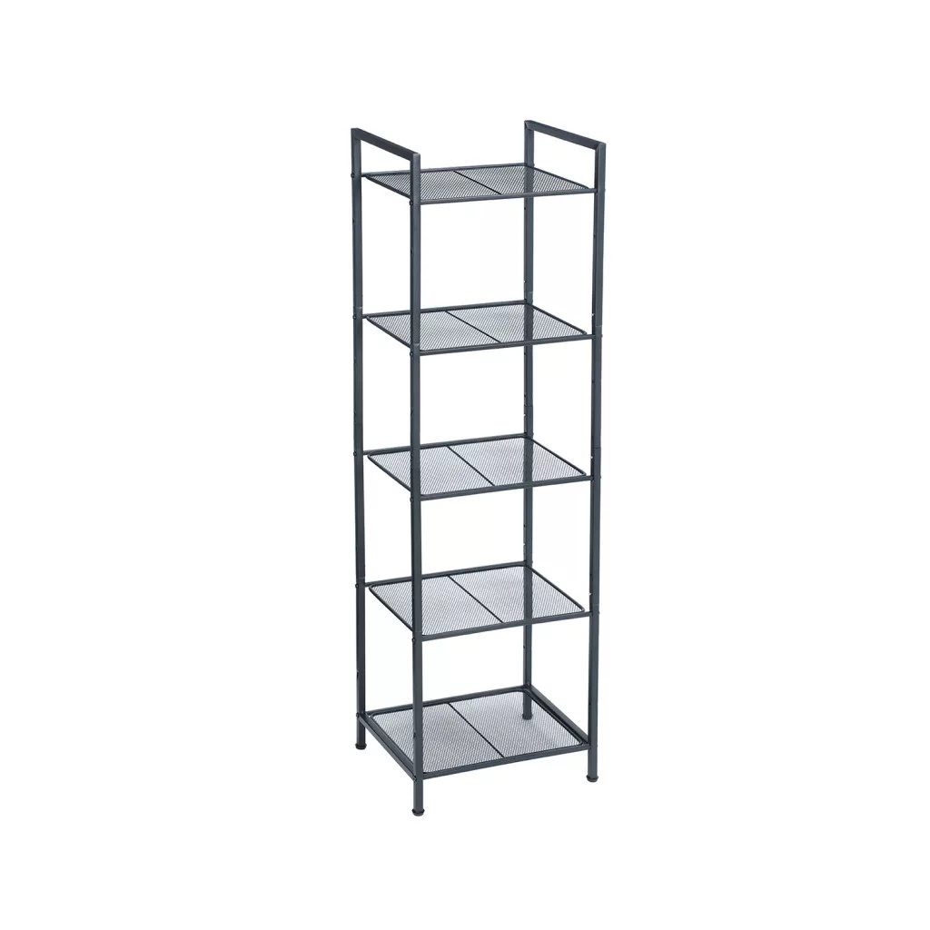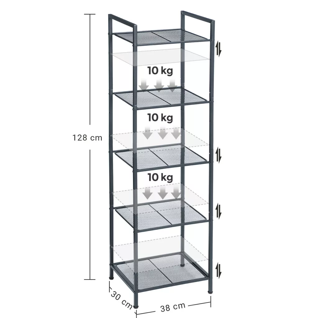 Sokoldalú, modern állópolc rendszer 5 állítható magasságú polccal, amely tökéletes megoldást nyújt a fürdőszoba, konyha vagy nappali tárolási igényeihez.