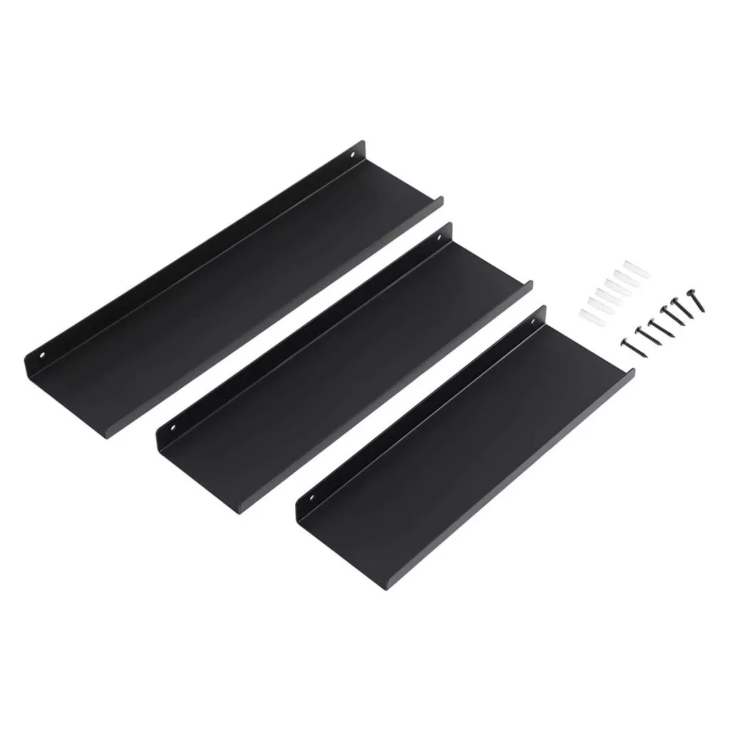 Ez a három különböző méretű, fekete porszórt fém polc tökéletes megoldást nyújt otthona stílusos kiegészítéséhez. A minimál dizájn és az ipari megjelenés harmonikusan illeszkedik bármilyen modern vagy indusztriális enteriőrbe. A polcok kiválóan alkalmasak dekorációk, fényképek, növények vagy mindennapi használati tárgyak elhelyezésére.