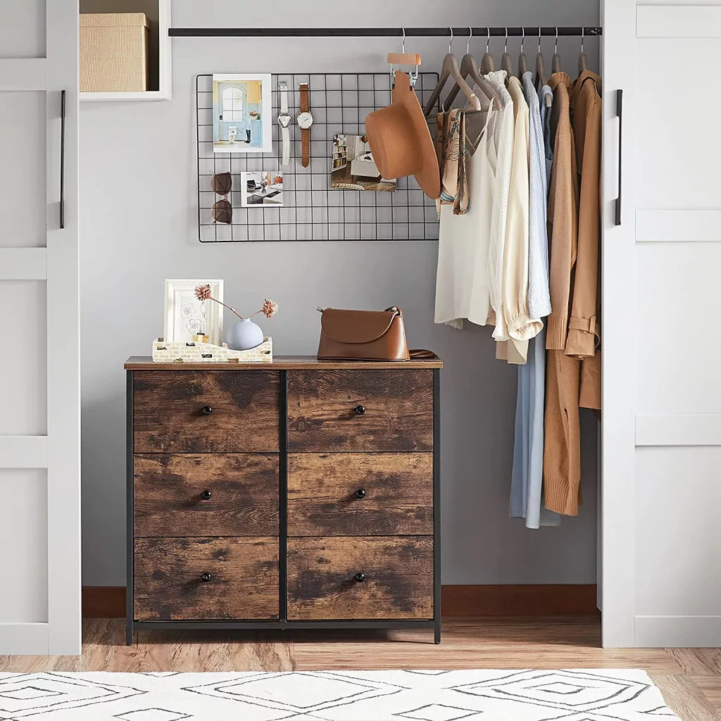 SONGMICS Ipari Stílusú Komód 6 Fiókkal Rusztikus Barna-Fekete
