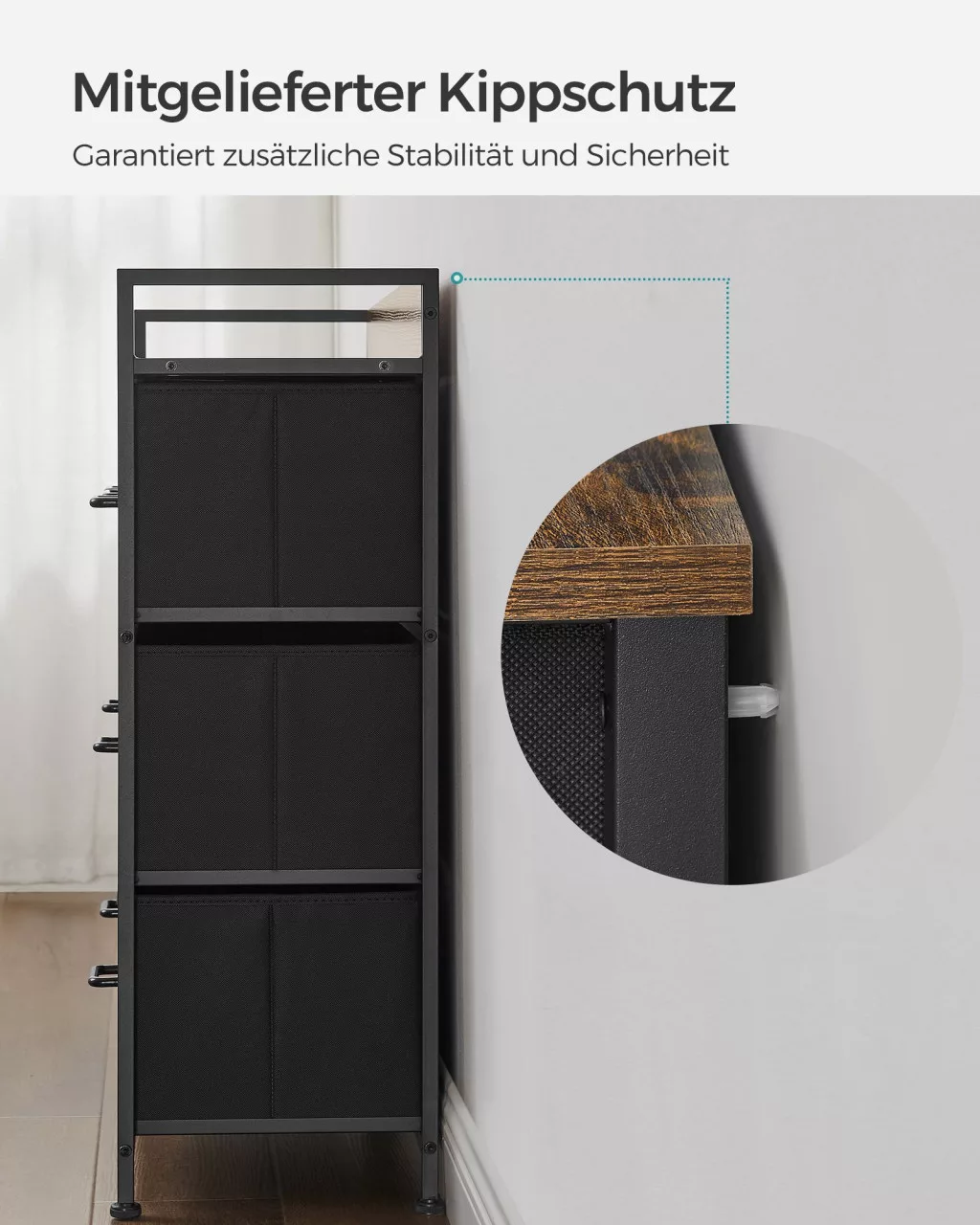 SONGMICS Ipari Stílusú Rusztikus Fiókos Szekrény 7 Fiókkal Fém Vázzal