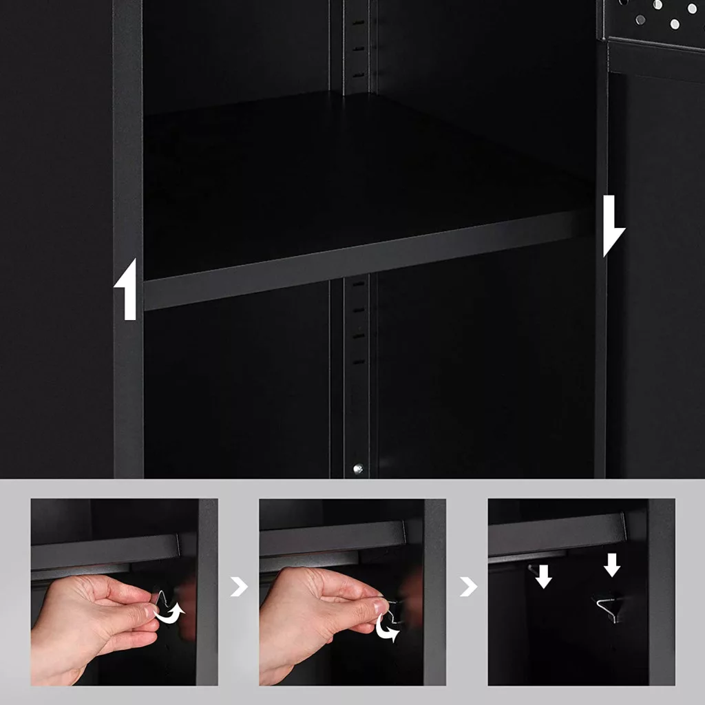 A szekrény állítható polccal és szellőzőnyílásokkal rendelkezik, ami sokoldalú felhasználást tesz lehetővé. Az állítható lábaknak köszönhetően egyenetlen padlón is stabilan áll, míg a masszív acélváz tartós használatot biztosít.