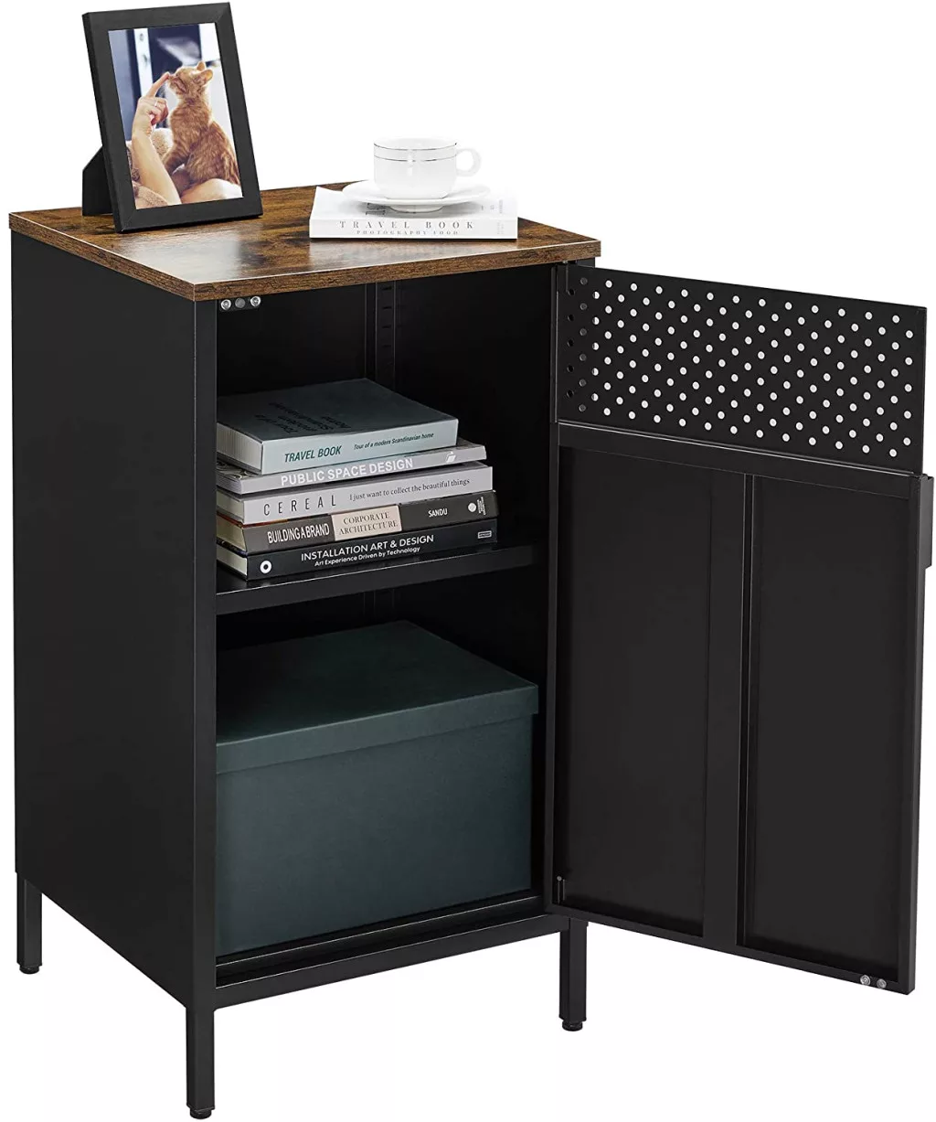 SONGMICS Ipari Stílusú Tárolószekrény Rusztikus Barna-Fekete Acélvázzal