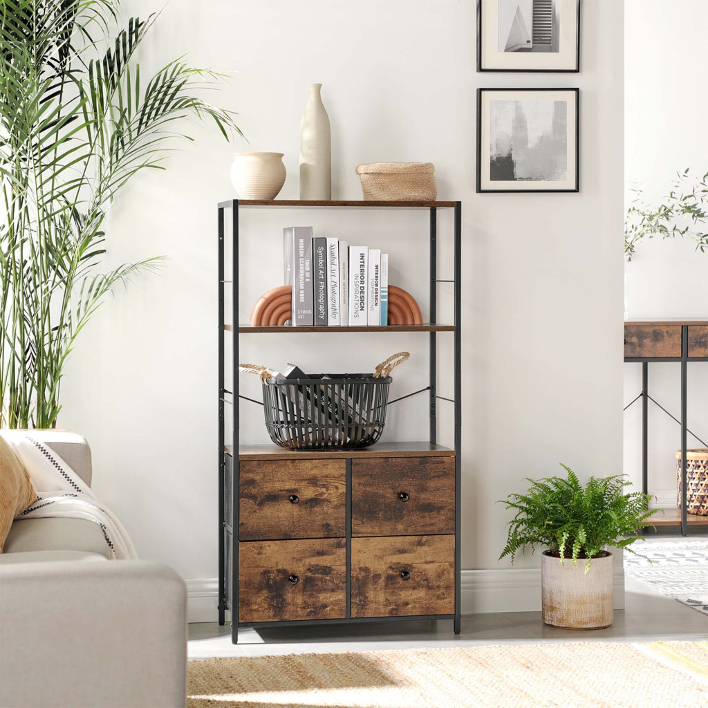 SONGMICS Ipari Tárolószekrény Rusztikus Barna-Fekete Fiókokkal és Polcokkal