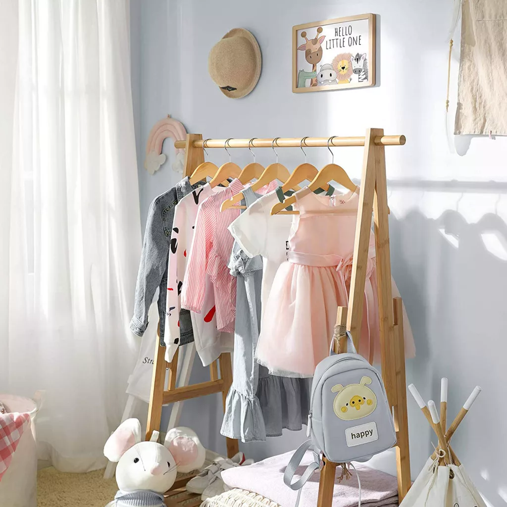 SONGMICS Juharfa Gyermek Vállfa Szett Nadrártartóval Natúr 10 db