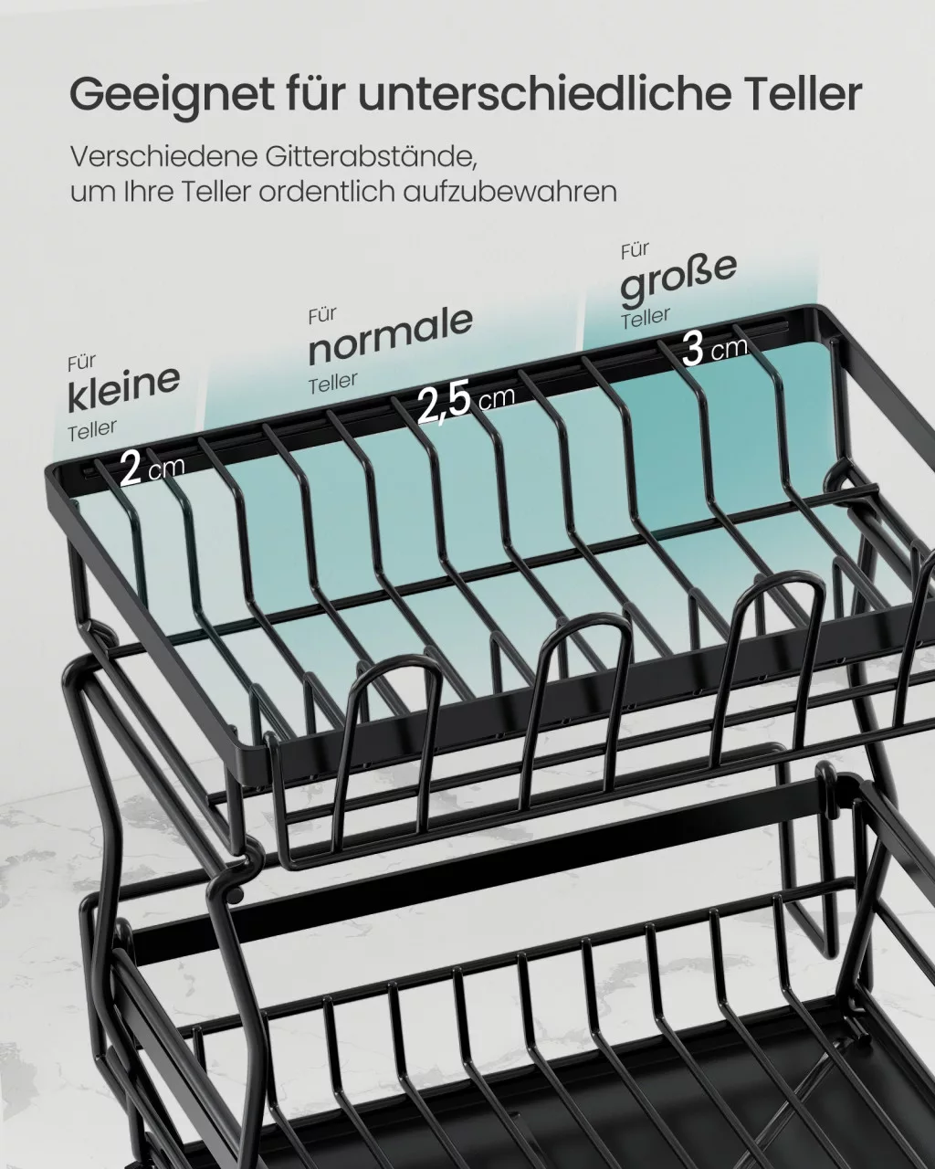 SONGMICS KCS551BH01 kétszintes edényszárító állvány acél fekete 360° forgatható csőrrel
