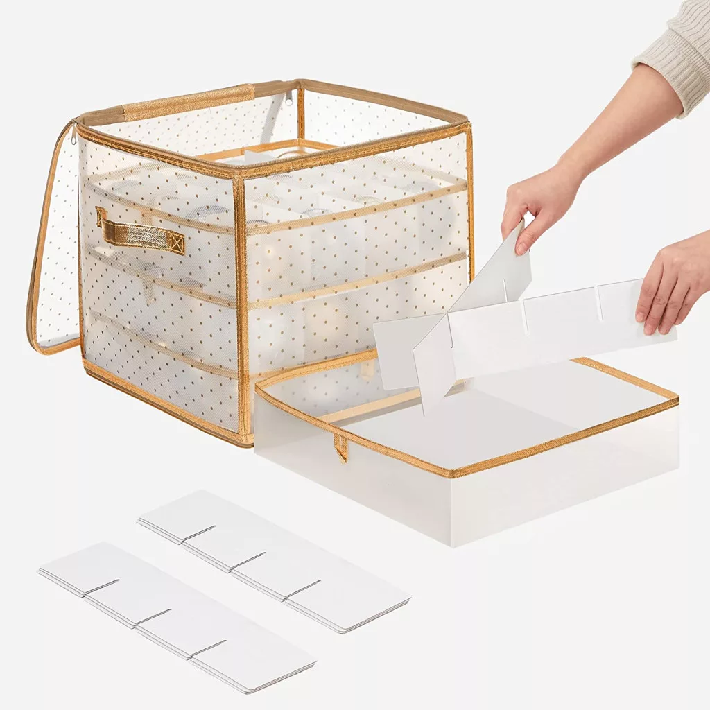 • Állítható elválasztók: Testreszabható tárolótér különböző méretű díszekhez
