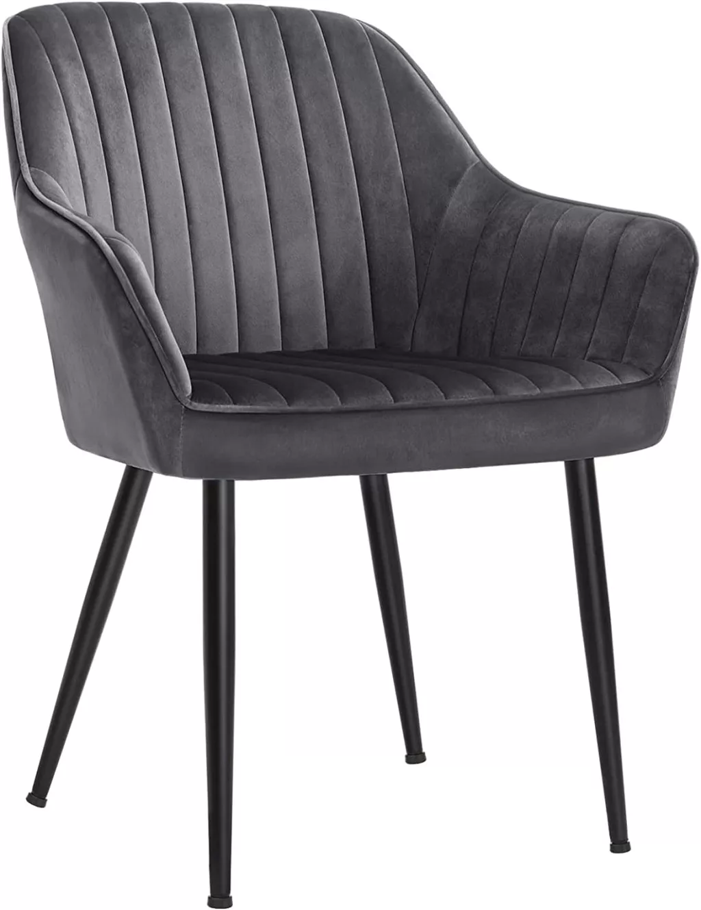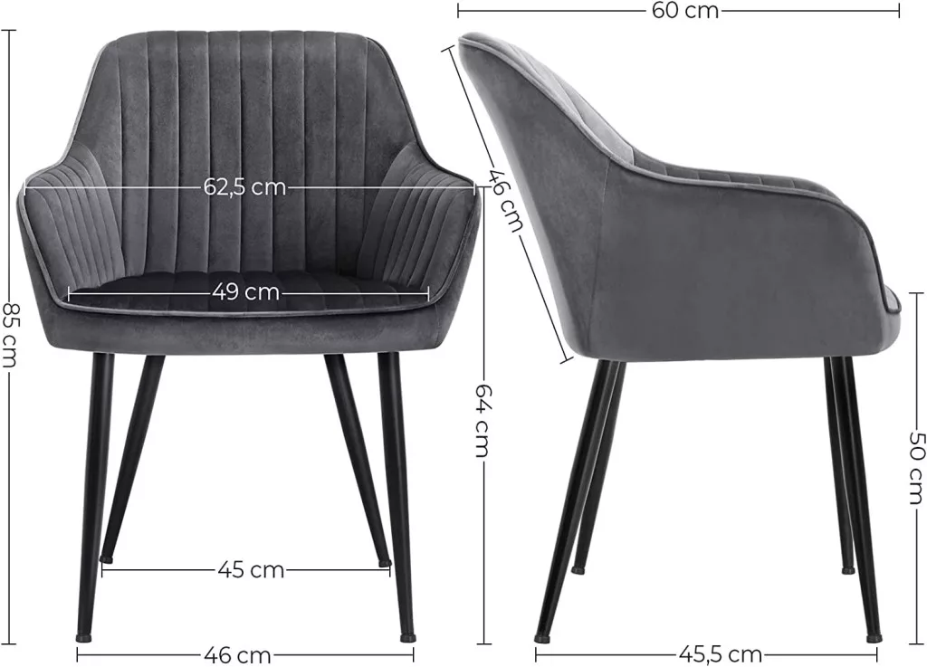 A SONGMICS kárpitozott szék a modern design és a kiváló kényelem tökéletes ötvözete. A 49 cm széles ülőfelület és a 7 cm vastag habszivacs párnázat hosszú órákra is biztosítja a kényelmet, míg az enyhén hátrahajtott háttámla és a karfák természetes támasztást nyújtanak. A szék egyedi megjelenését a puha bársony huzat és az elegáns függőleges steppelés adja, amely bármely helyiségben feltűnést kelt.