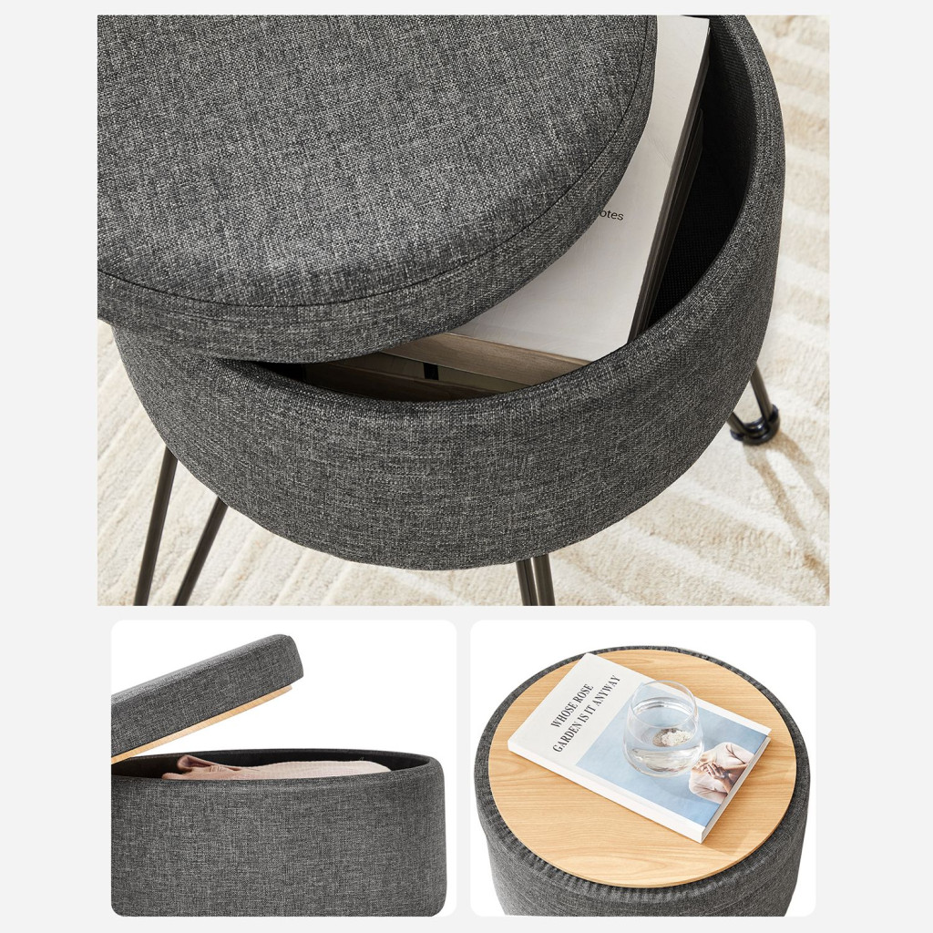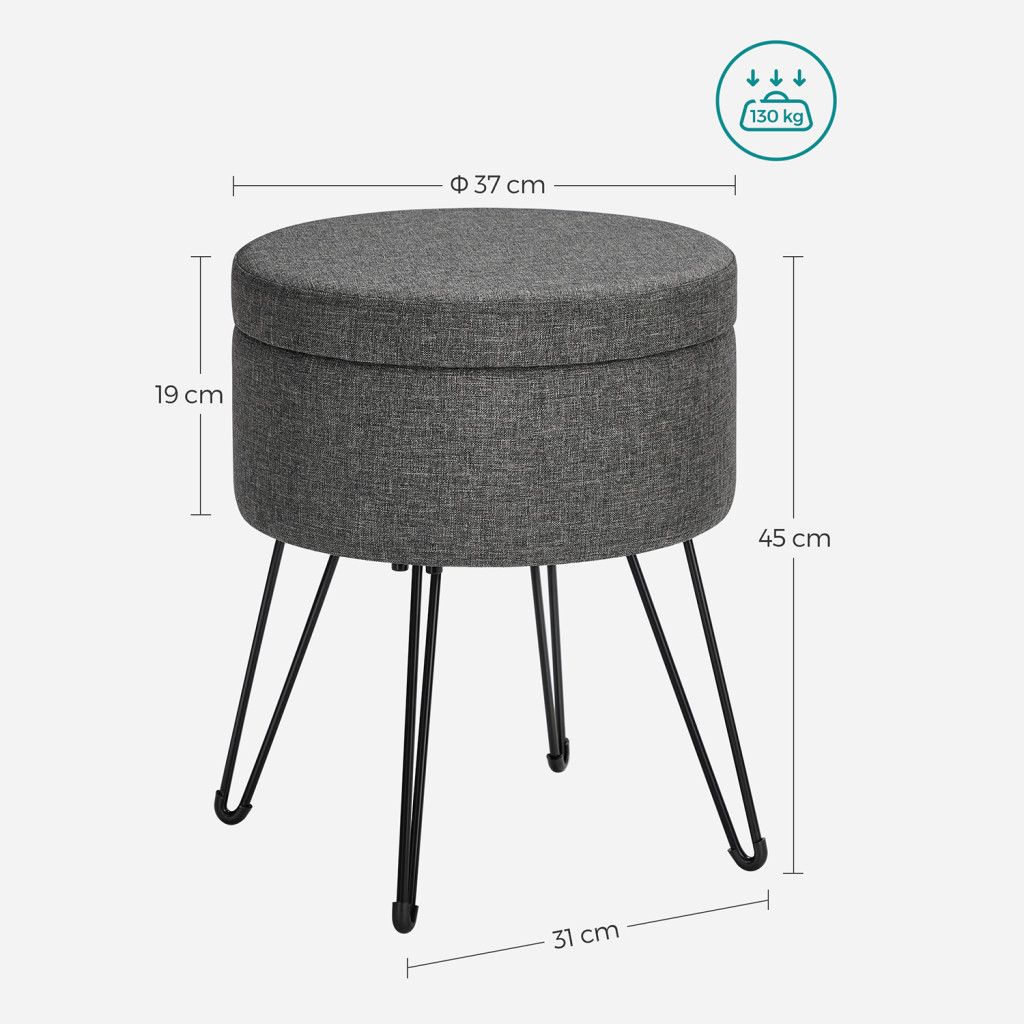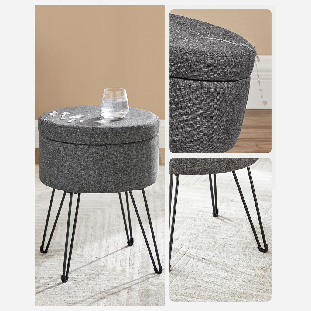 SONGMICS Kerek Tárolós Zsámoly Fémlábakon Sötétszürke Ülőke