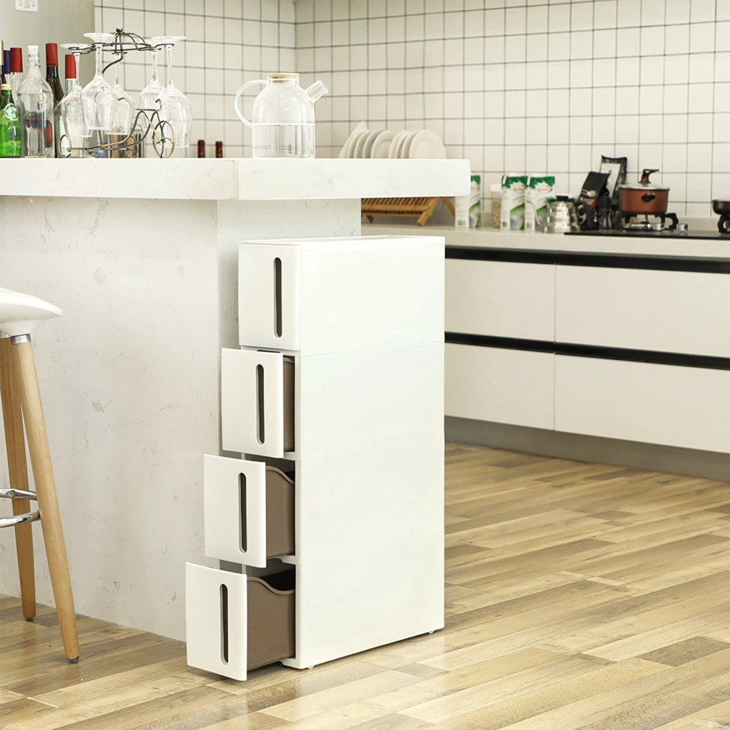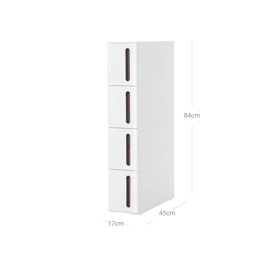 SONGMICS Keskeny Gurulós Tárolószekrény 4 Fiókos PP Műanyag Fehér-Barna