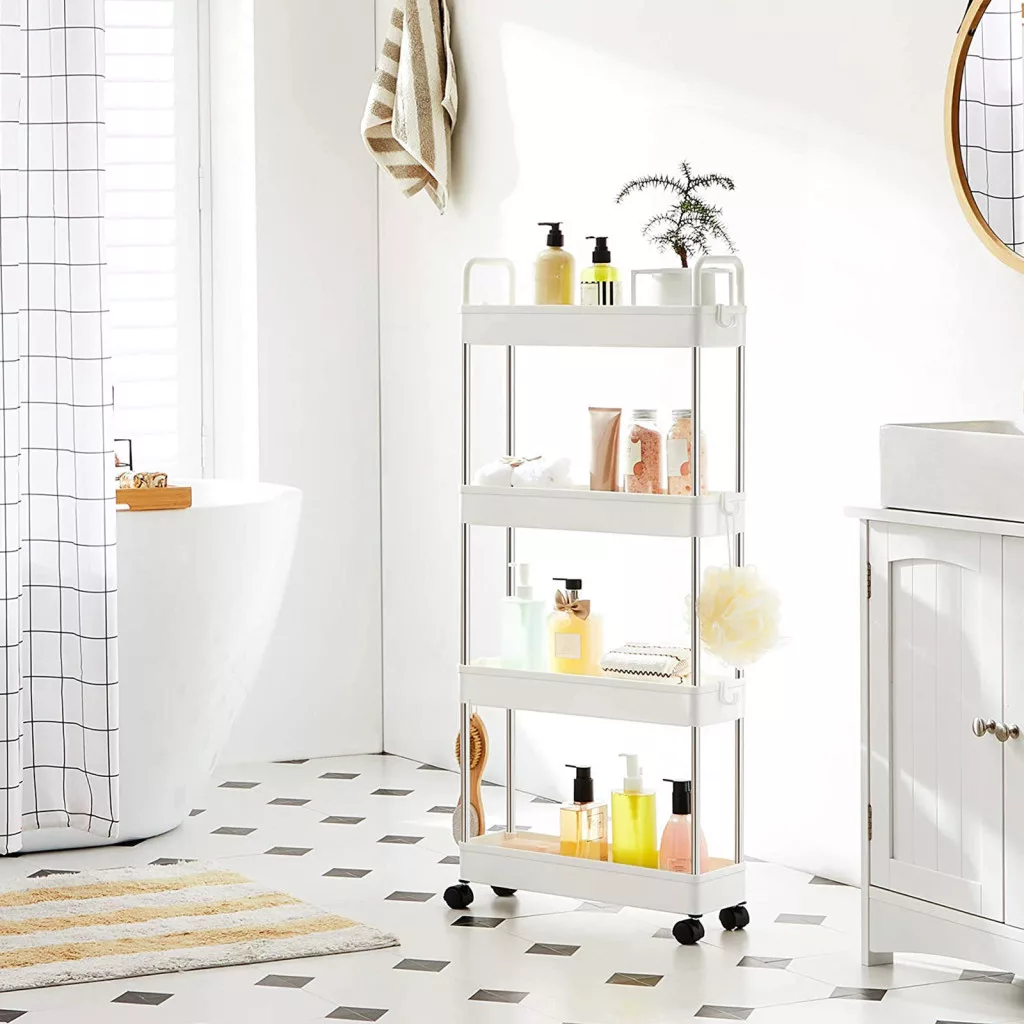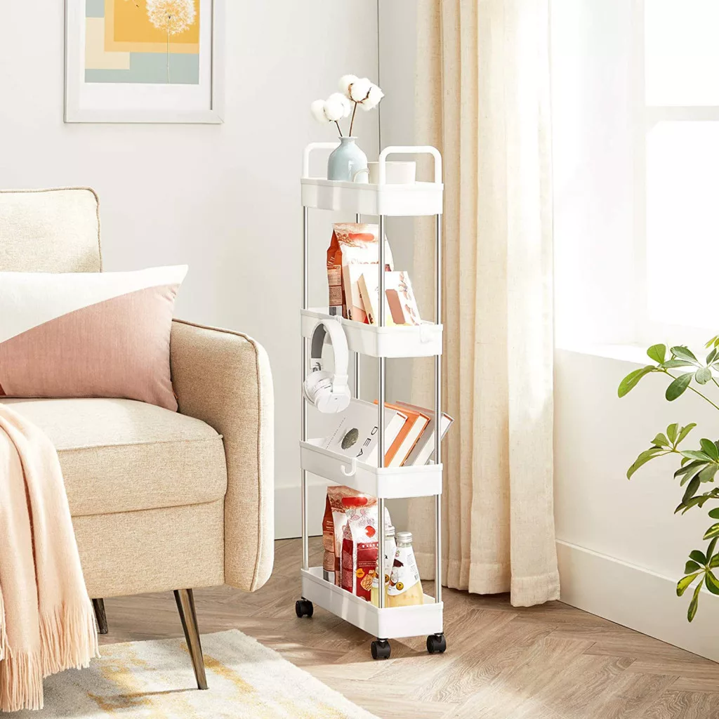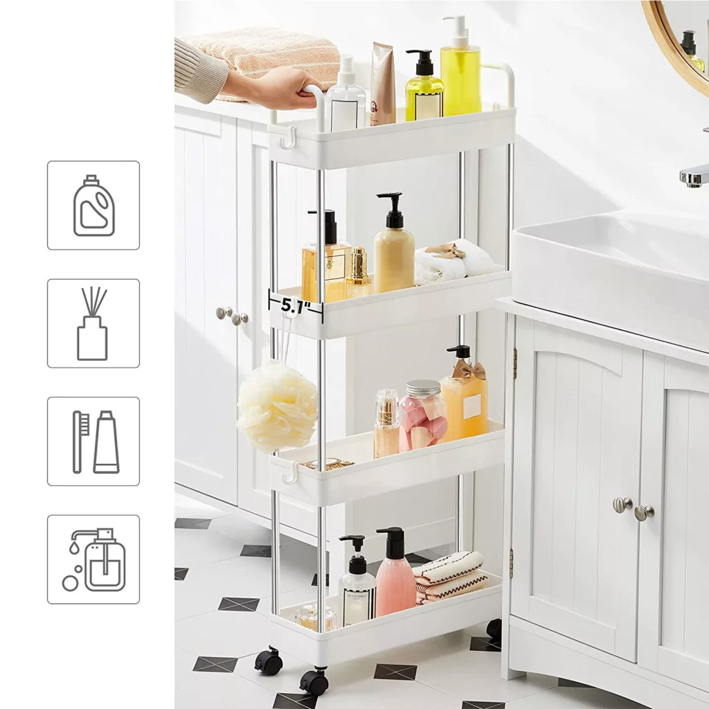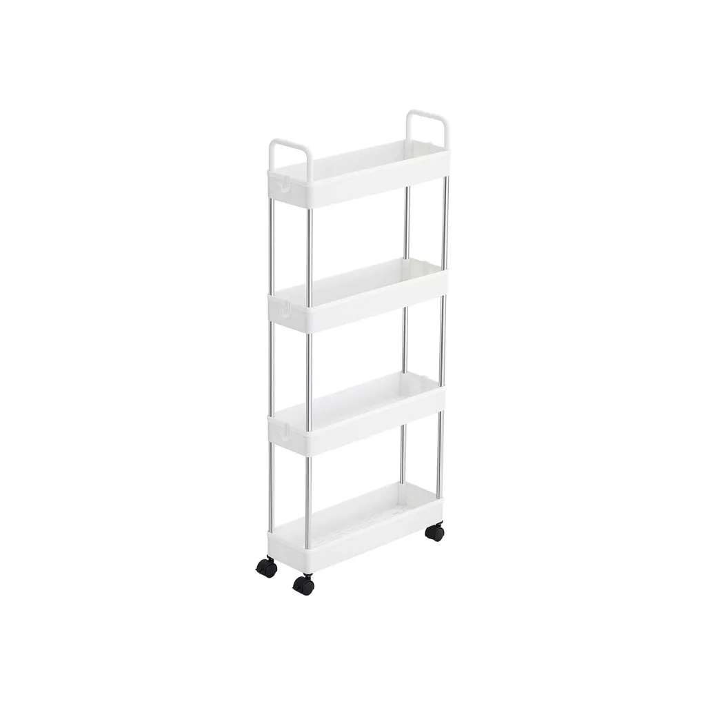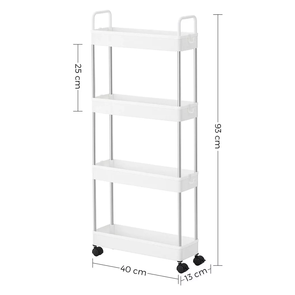 SONGMICS Keskeny Tárolókocsi 4 Szintes Görgős Fürdőszoba Konyhai Rendszerező Fehér
