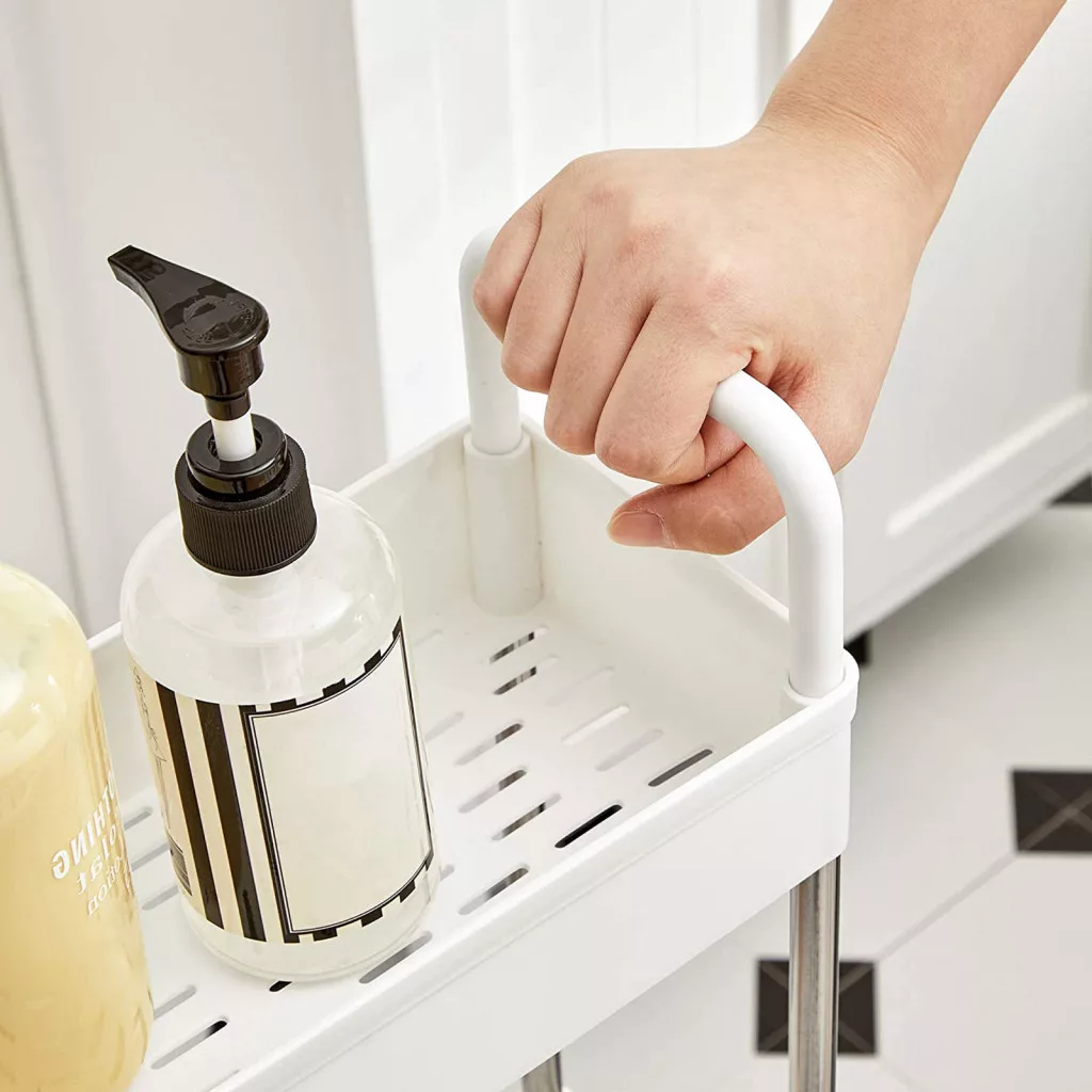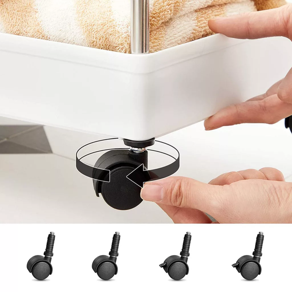 A négy szint mindegyike 5 kg teherbírással rendelkezik, így alkalmas kozmetikumok, tisztítószerek vagy konyhai eszközök tárolására. A beépített kerekek és fogantyúk megkönnyítik a mozgatást, míg a két rögzítőfék stabilan tartja a kocsit a kívánt helyen.