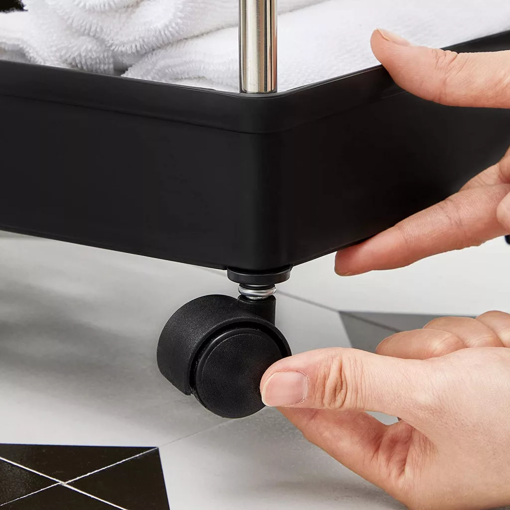 A négy szint mindegyike 5 kg teherbírással rendelkezik, így ideális kozmetikumok, tisztítószerek vagy konyhai eszközök tárolására. A beépített kerekek és fogantyúk révén könnyen mozgatható, míg a két rögzítőfék stabilitást biztosít használat közben.