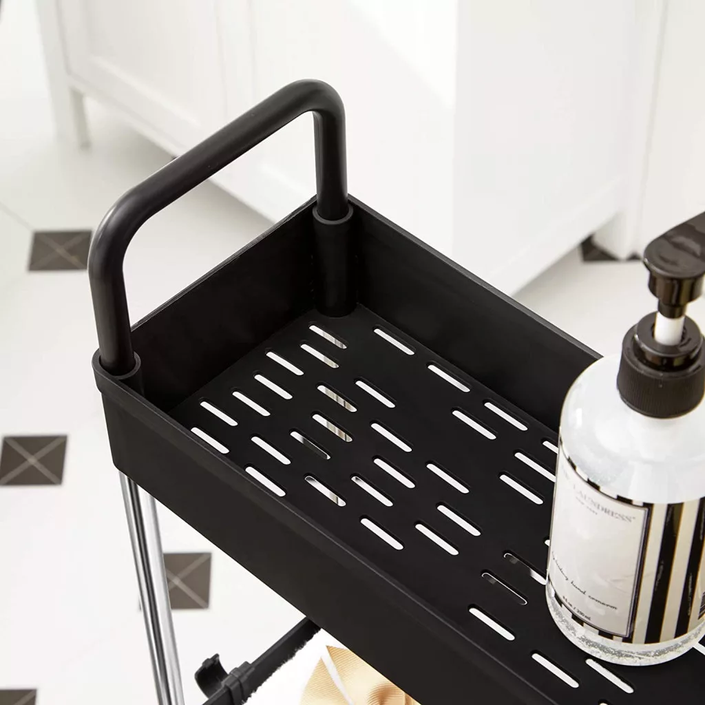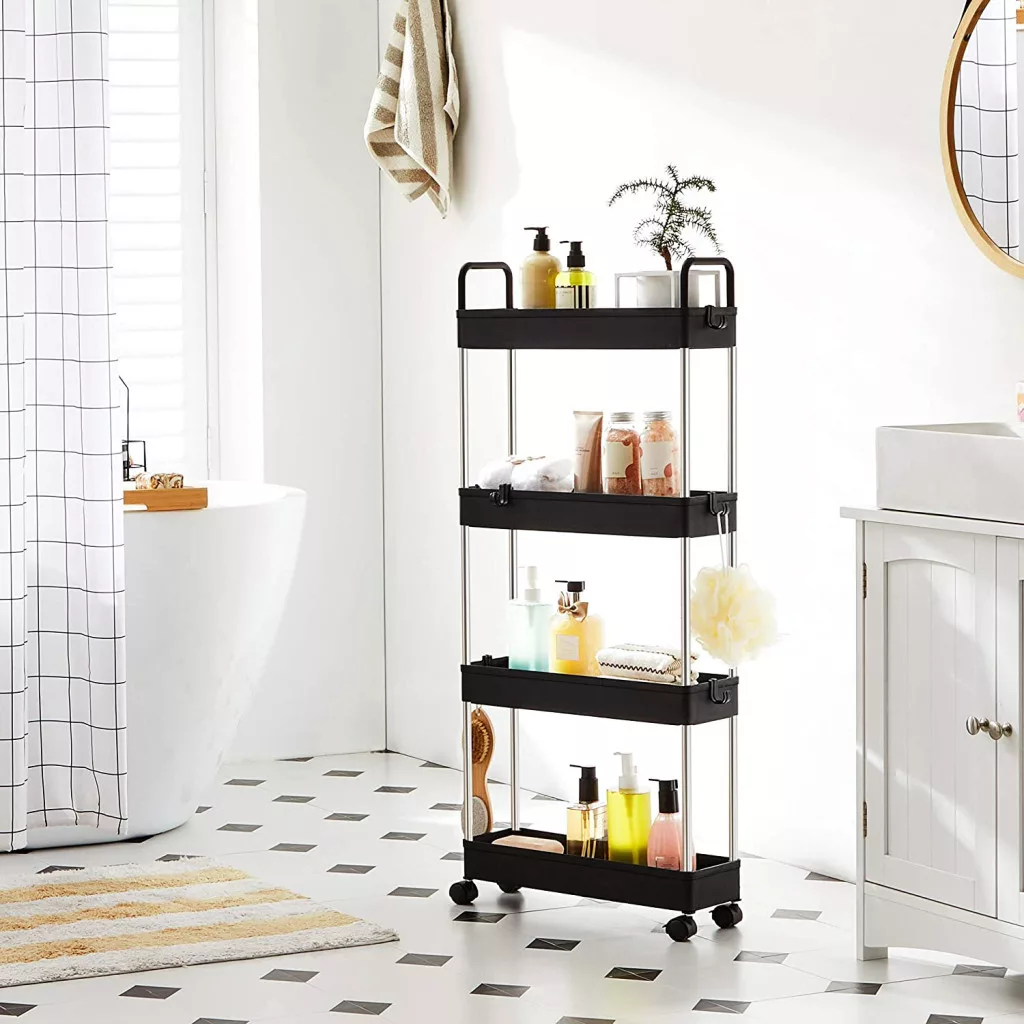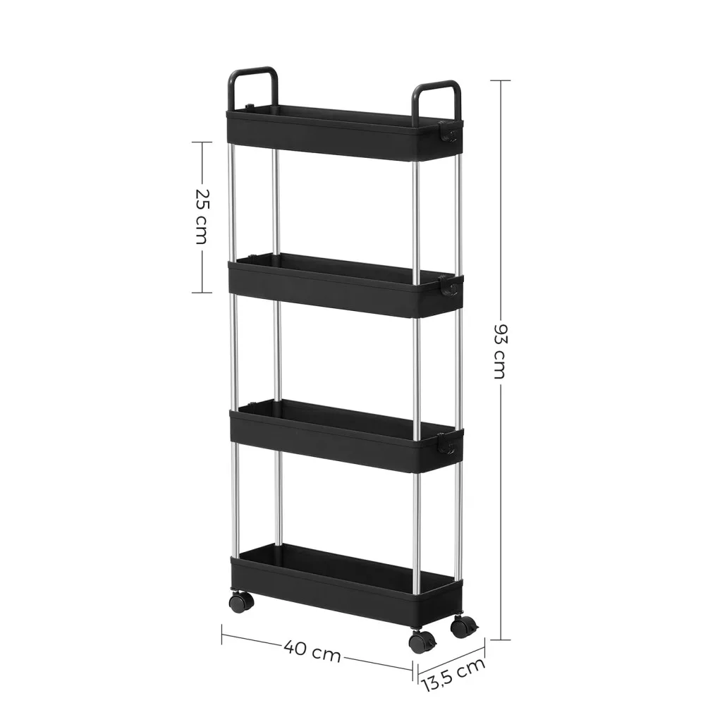 SONGMICS Keskeny Tárolókocsi 4-Szintes Rozsdamentes Acél Fürdőszobai Kiskocsi Fekete