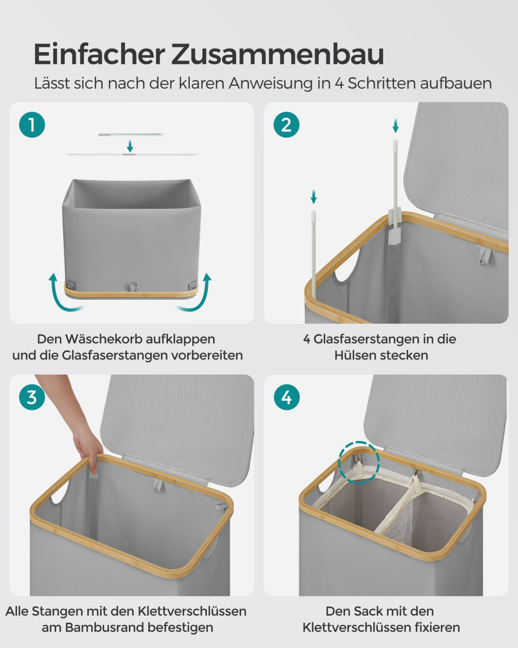 SONGMICS Kétrészes Szennyestartó Kosár Bambusz Fogantyúval Galambszürke