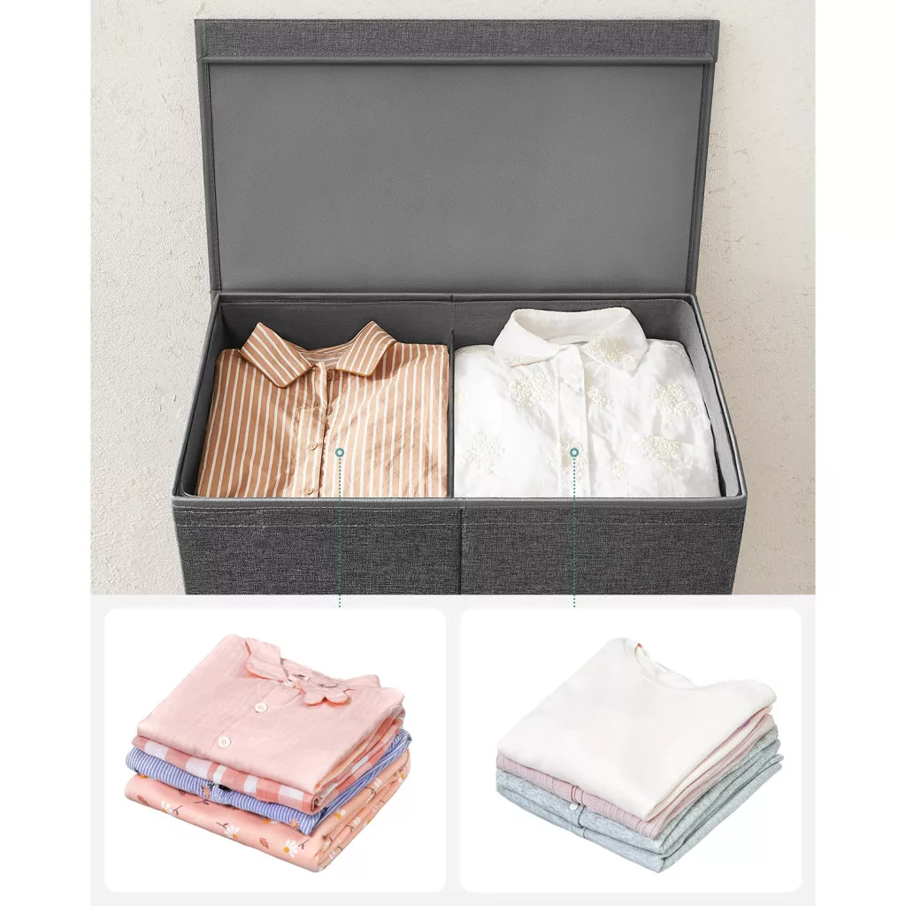 SONGMICS Kétrészes Szennyestartó Kosár Mágneses Fedéllel Sötétszürke