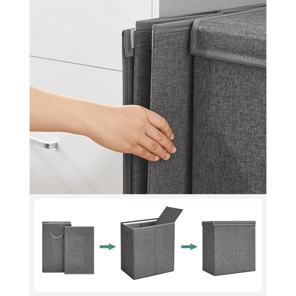 Ez a modern kialakítású szennyestartó kosár tökéletes megoldást nyújt a mindennapi mosási rutin megszervezéséhez. A két külön rekesznek köszönhetően könnyedén szétválogathatja a világos és sötét ruhákat, vagy különböző típusú textíliákat. A prémium minőségű, vászon hatású anyag nem csak stílusos megjelenést kölcsönöz, de tartósságot is biztosít.