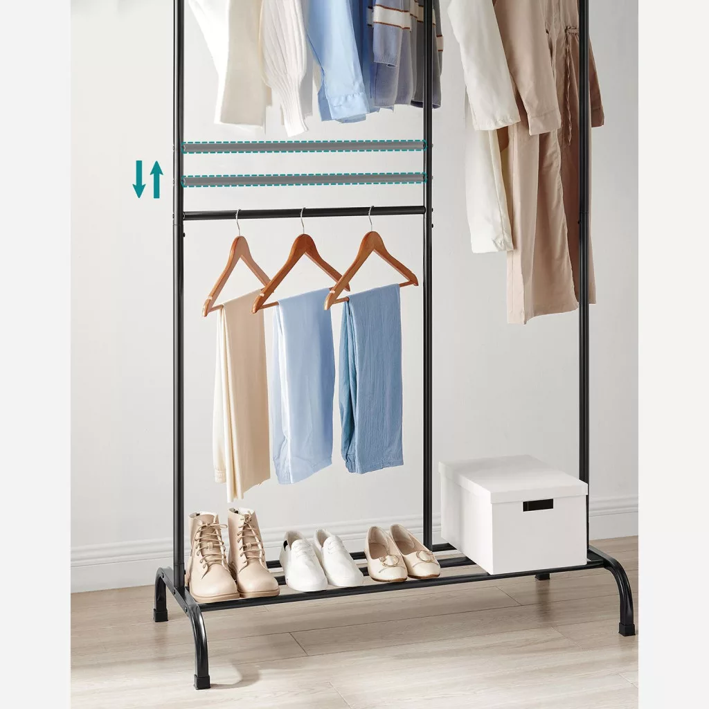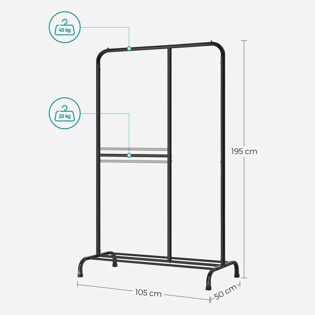 SONGMICS Kétszintes Acél Ruhaállvány Fekete