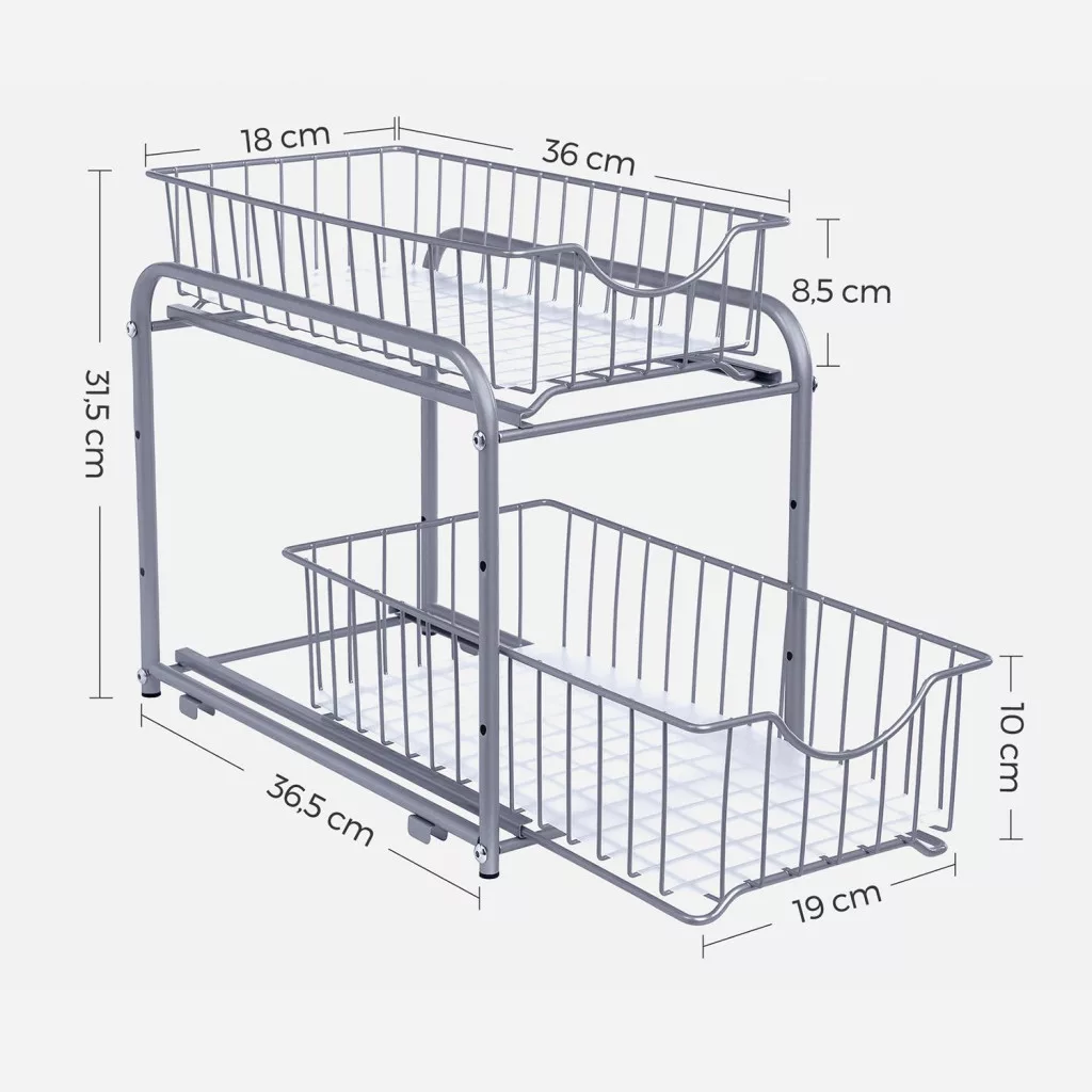 SONGMICS Kihúzható Kétszintes Tárolórendszer Ezüst Acél Fürdőszobai és Konyhai Szervező