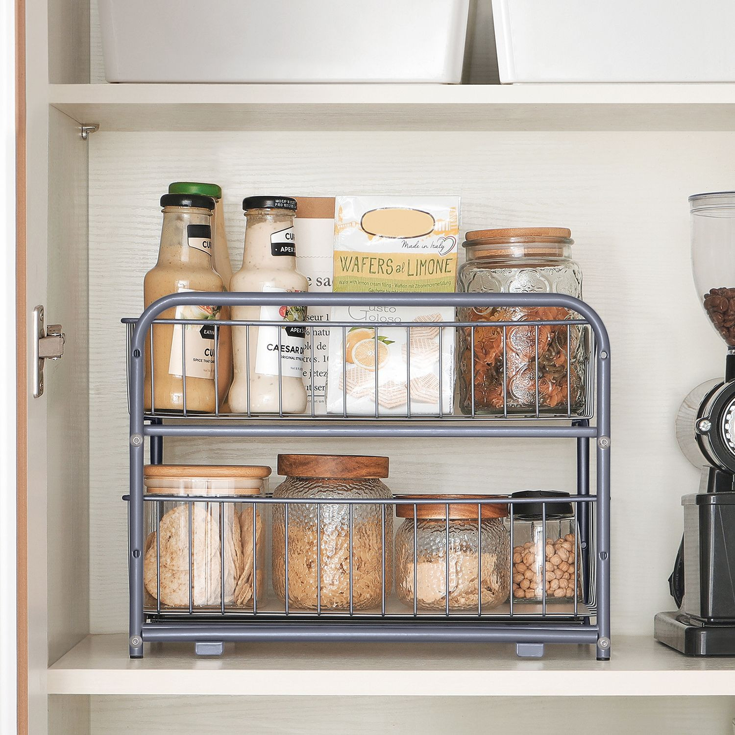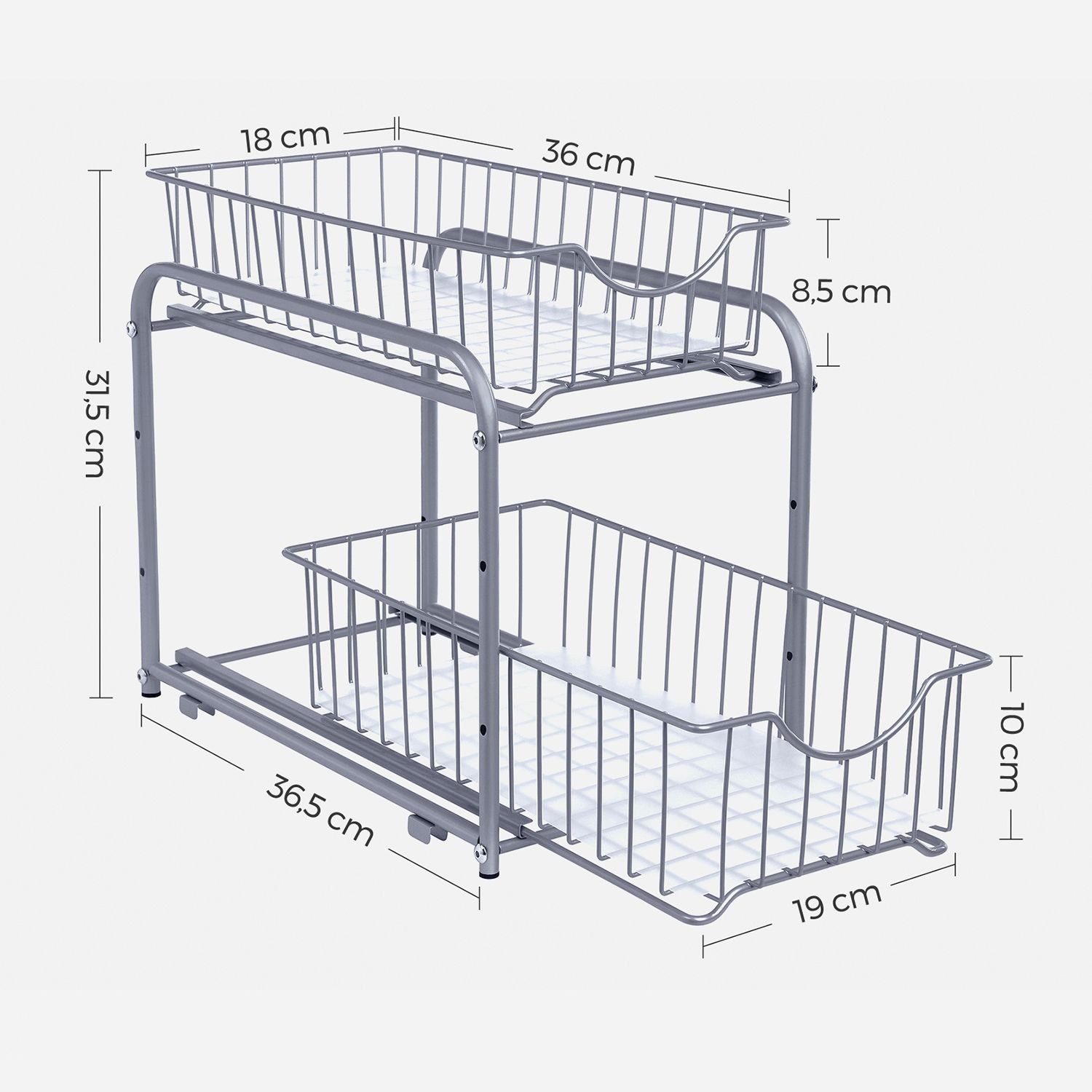 SONGMICS Kihúzható Konyhai Szervező Állvány Ezüst 2-Szintes Acél