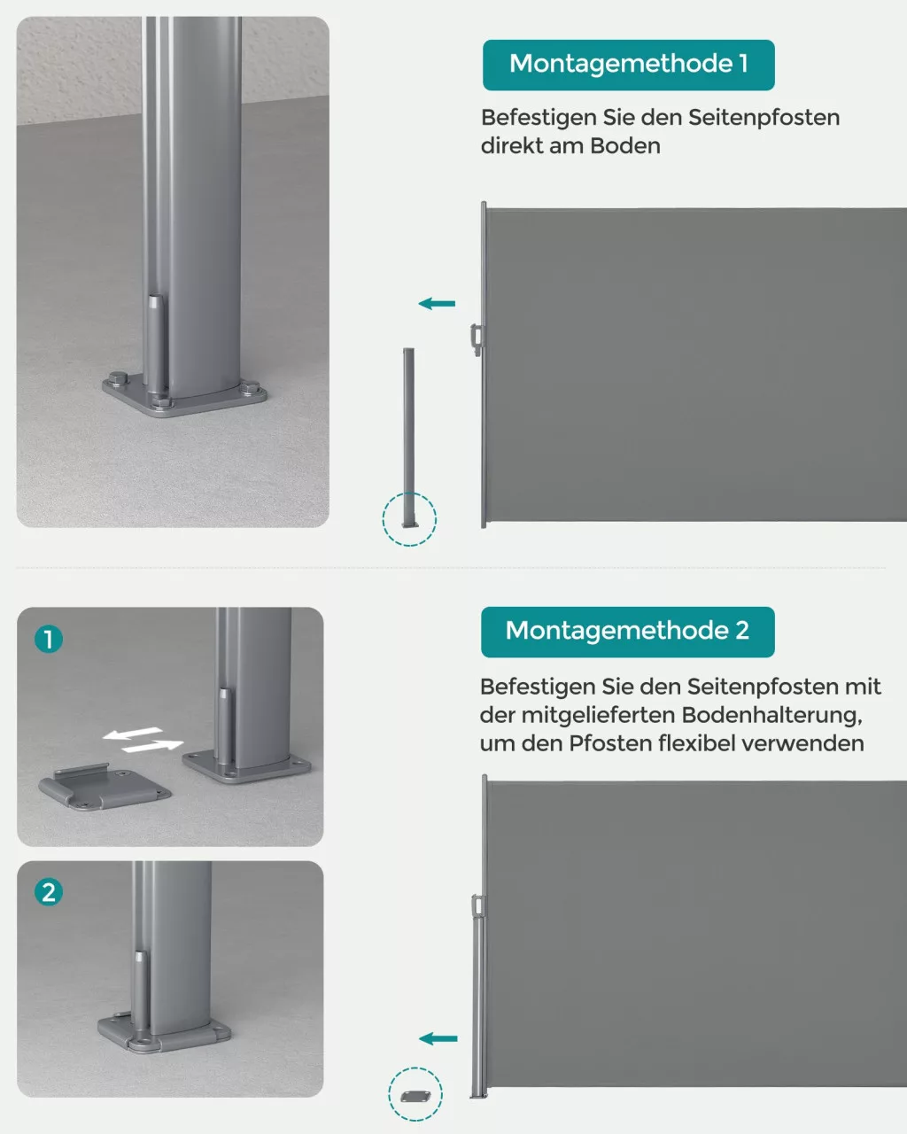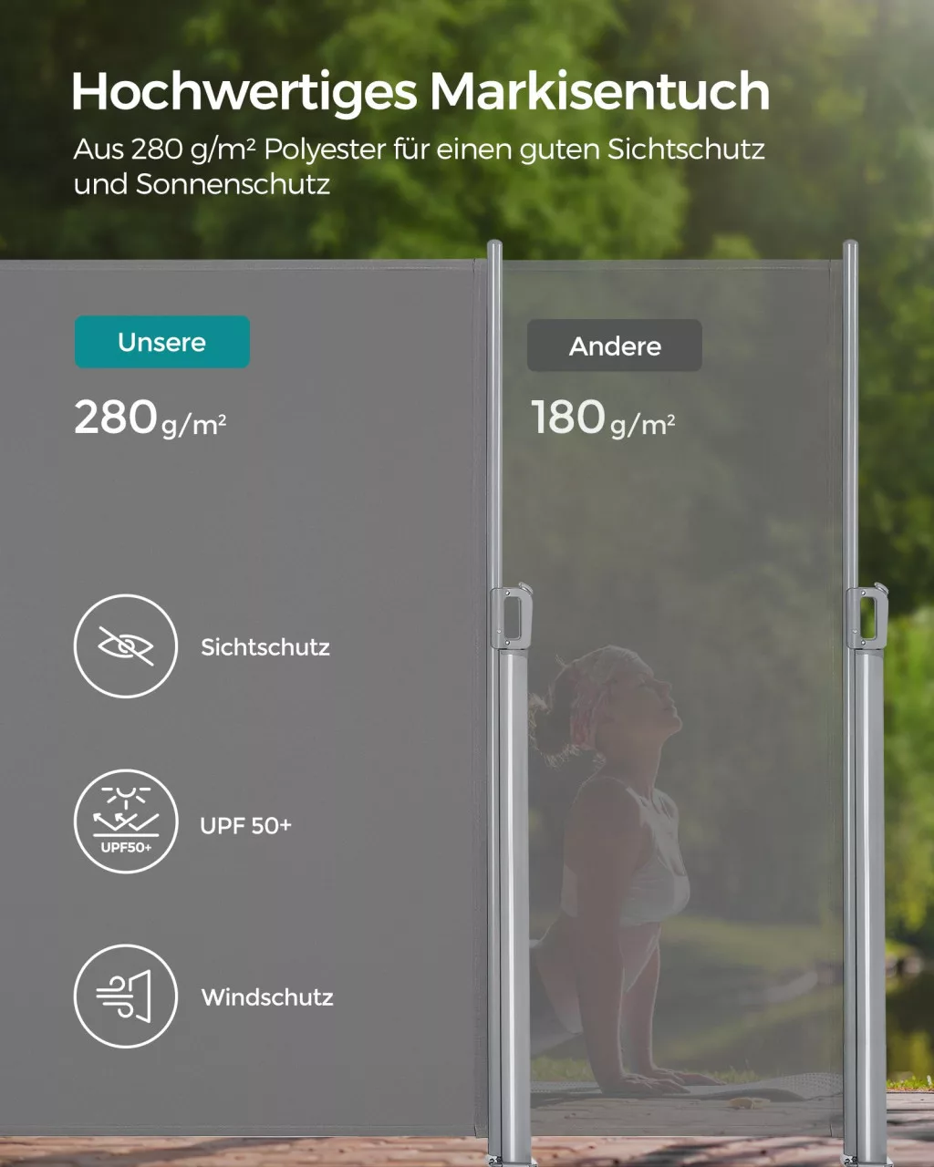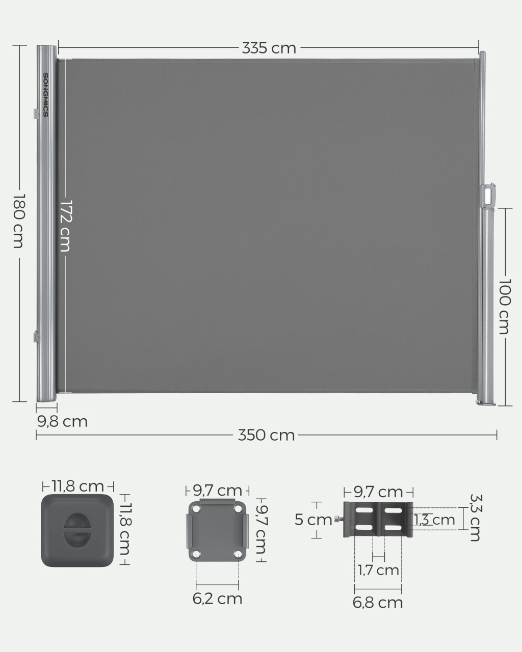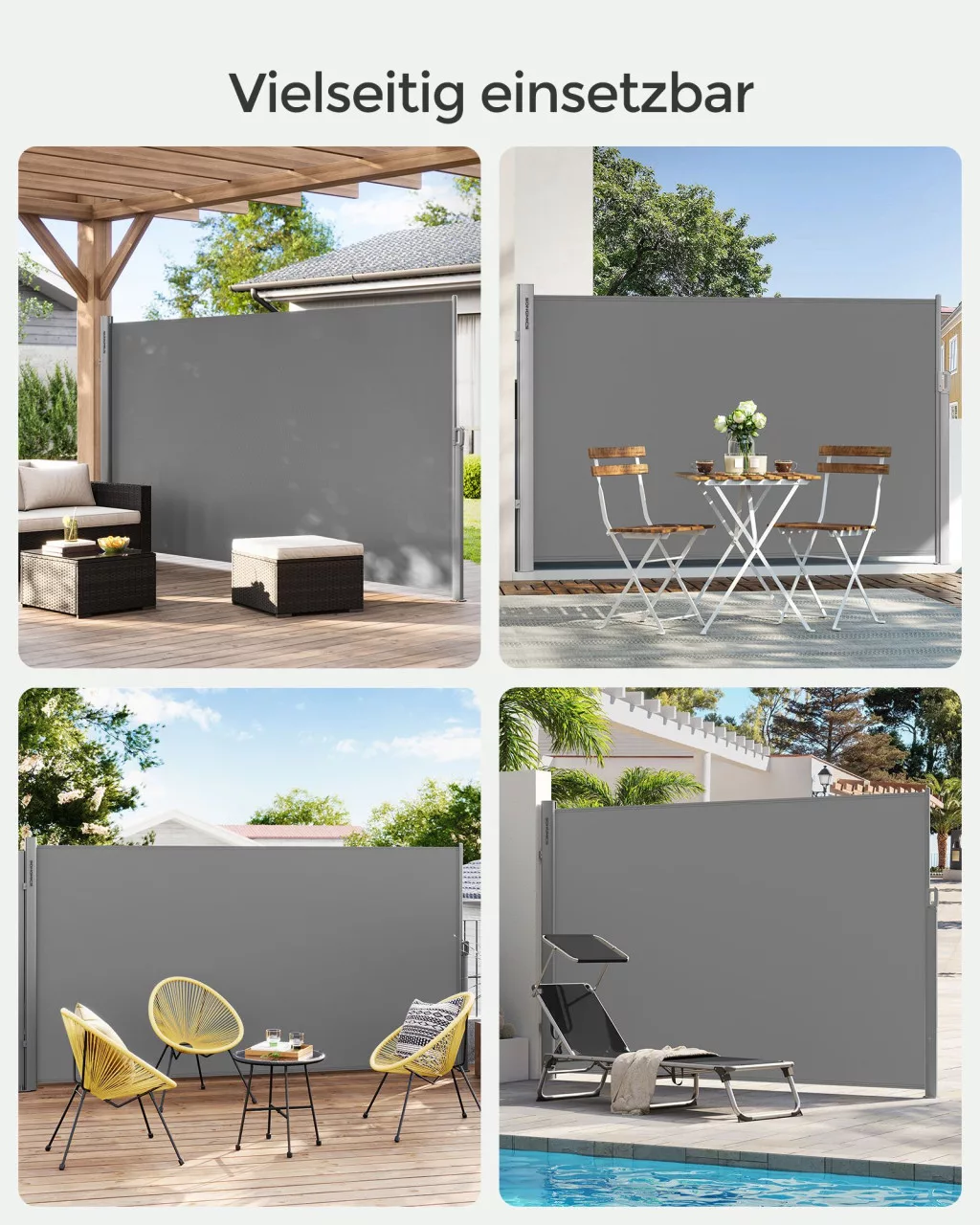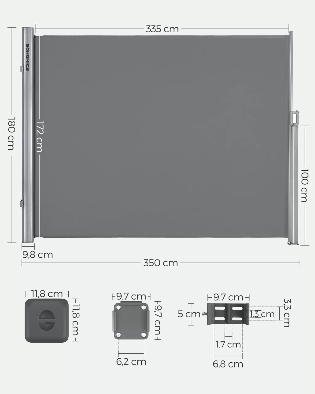 SONGMICS Kihúzható Oldalsó Napellenző 1.8 x 3.5 m Szürke Terasz és Kert Árnyékoló