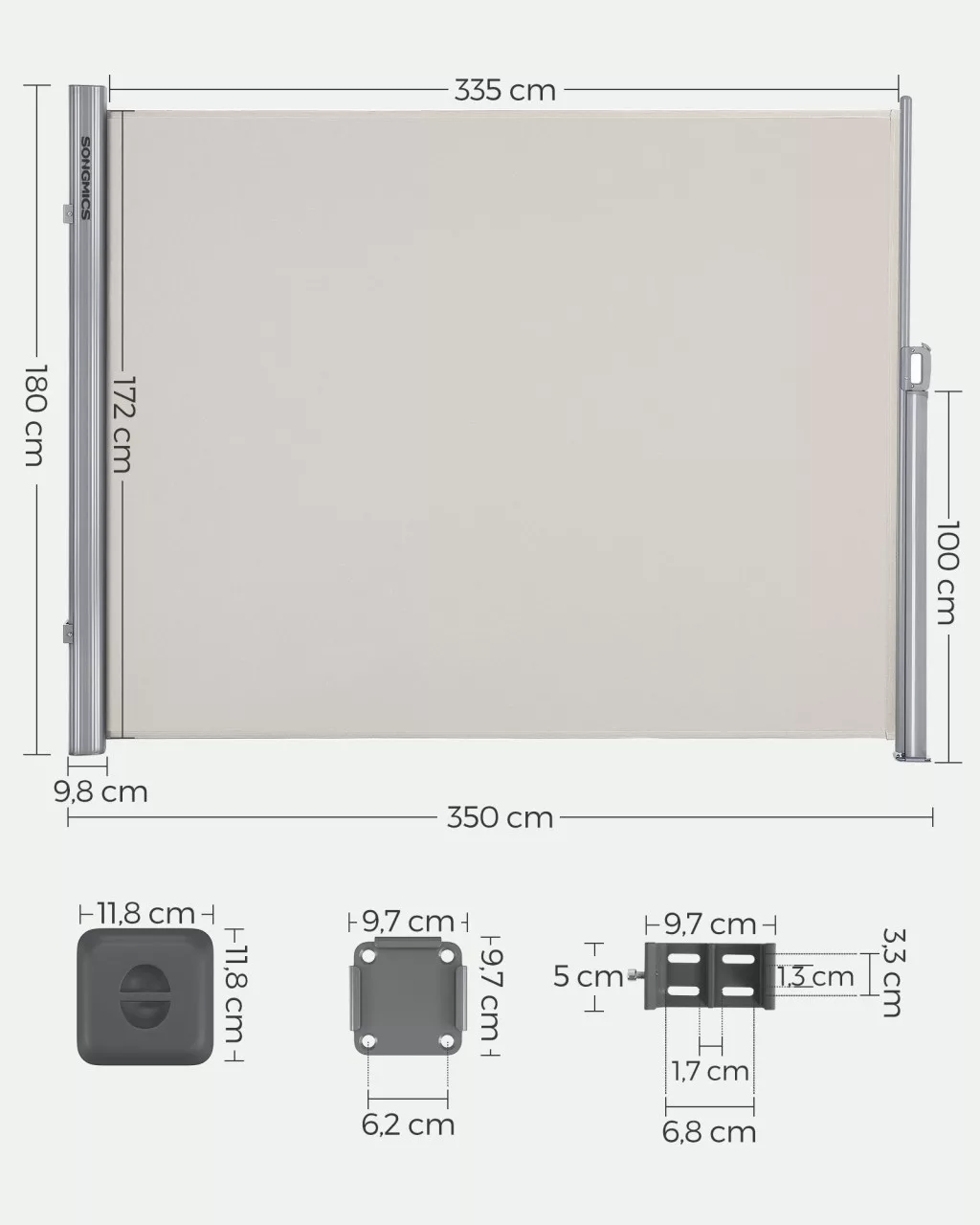SONGMICS Kihúzható Oldalsó Napellenző Teraszhoz és Erkélyhez Bézs 180 x 350 cm
