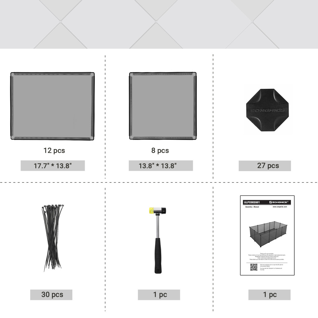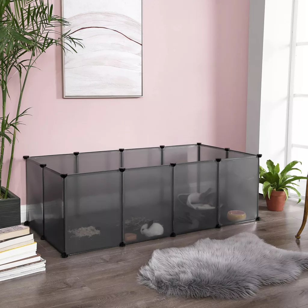 SONGMICS Kisállat Kifutó Átlátszó Műanyag Moduláris Ketrec Szürke