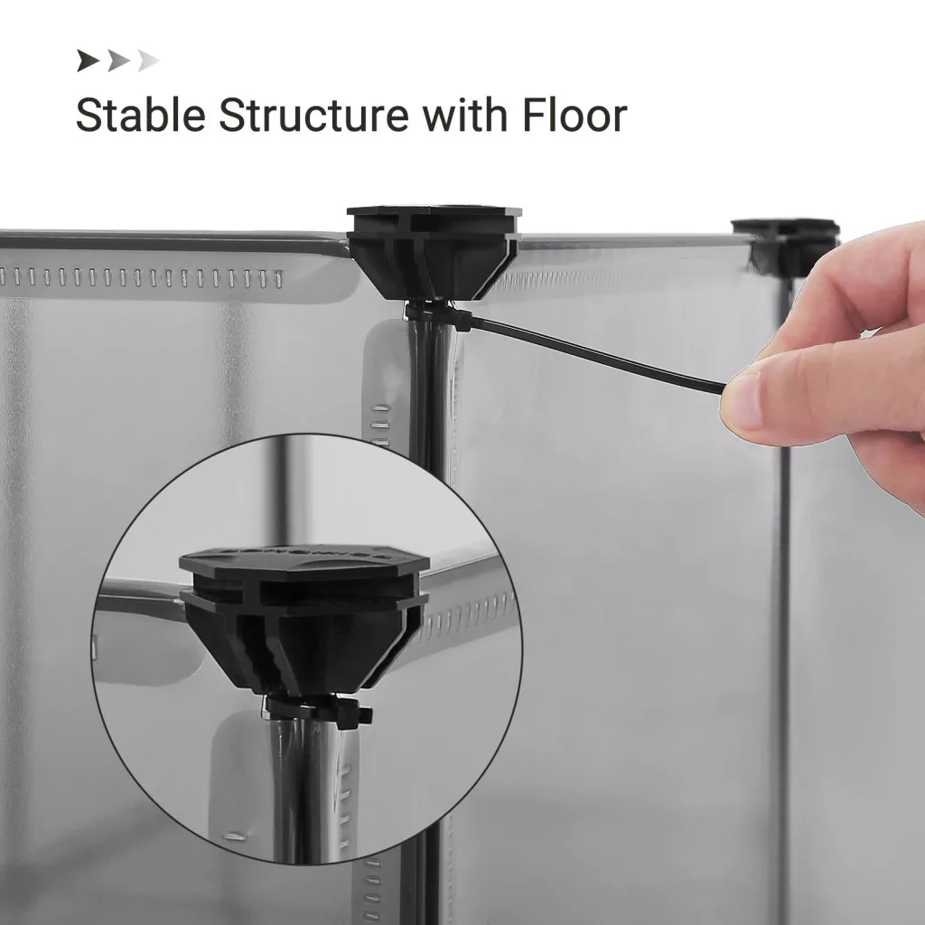 A moduláris rendszer rendkívül sokoldalú - alakítható L-alakúra, bővíthető második szinttel, vagy akár nagyobb térré is összeépíthető. Az egyedi csatlakozási rendszer résmentesen illeszkedik, így a kisállatok nem tudnak kiszökni.