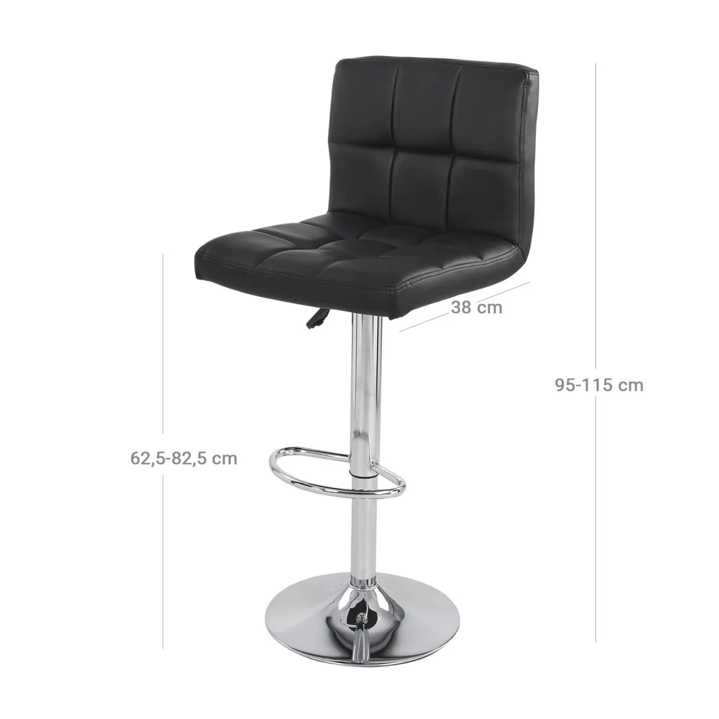 A SONGMICS LJB64B bárszék szett tökéletes választás azok számára, akik elegáns és funkcionális ülőbútort keresnek konyhájukba vagy bárpultjukhoz. A fekete műbőr kárpittal bevont, párnázott ülőfelület és háttámla kiváló kényelmet biztosít, míg a krómozott acélszerkezet stabilitást és tartósságot garantál. A 6 cm vastag habszivacs párnázás hosszú ideig is kellemes ülési élményt nyújt.