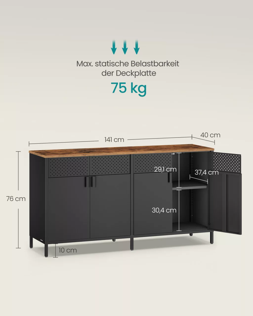 • Sokoldalú felhasználás: Klasszikus színvilága és egyszerű dizájnja révén tökéletes komód az étkezőben, TV-állvány a nappaliban vagy tárolószekrény bármely helyiségben