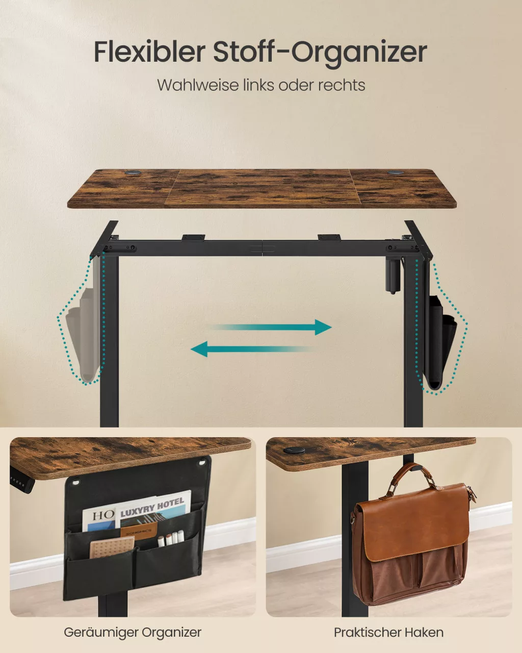 SONGMICS LSD132K01 elektromosan állítható magasságú íróasztal vintage barna fekete memóriafunkcióval