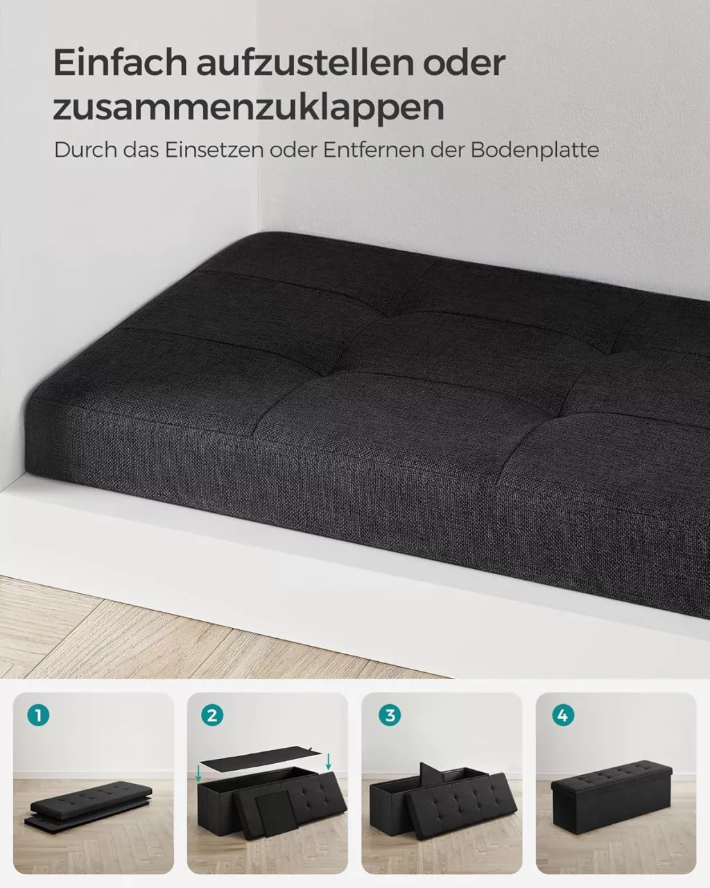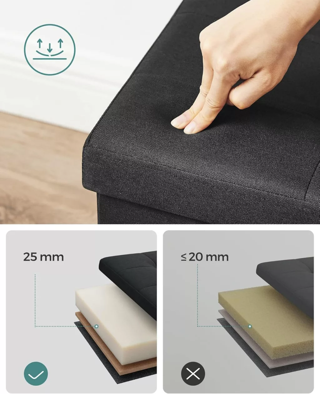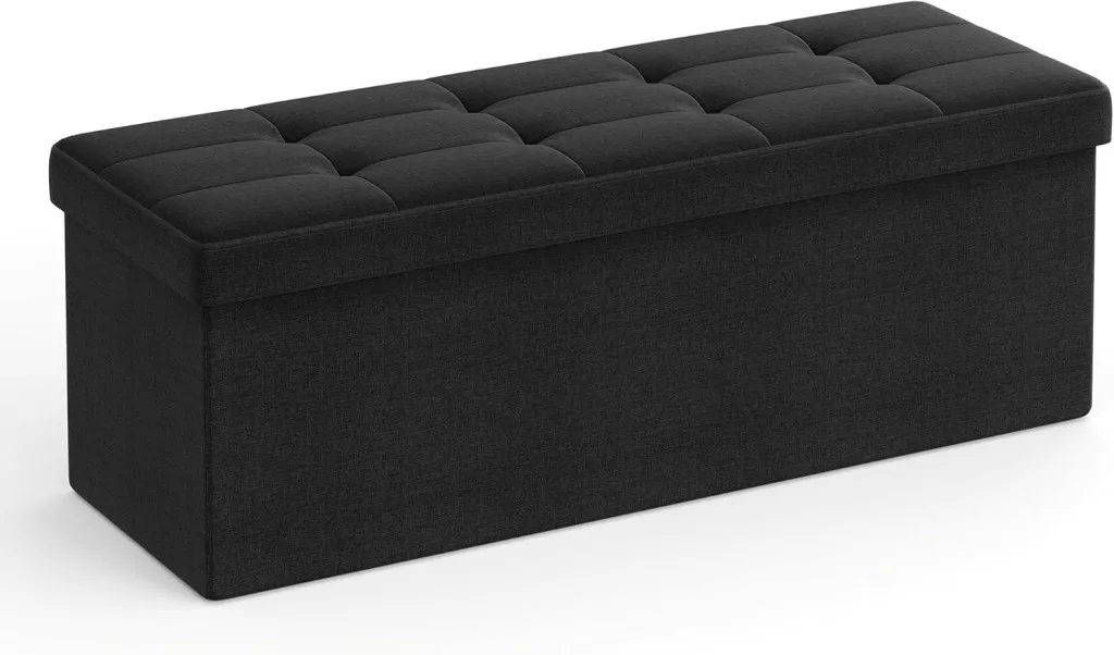 SONGMICS LSF077B01 Tárolós Ülőpad Fekete Műbőr Összecsukható