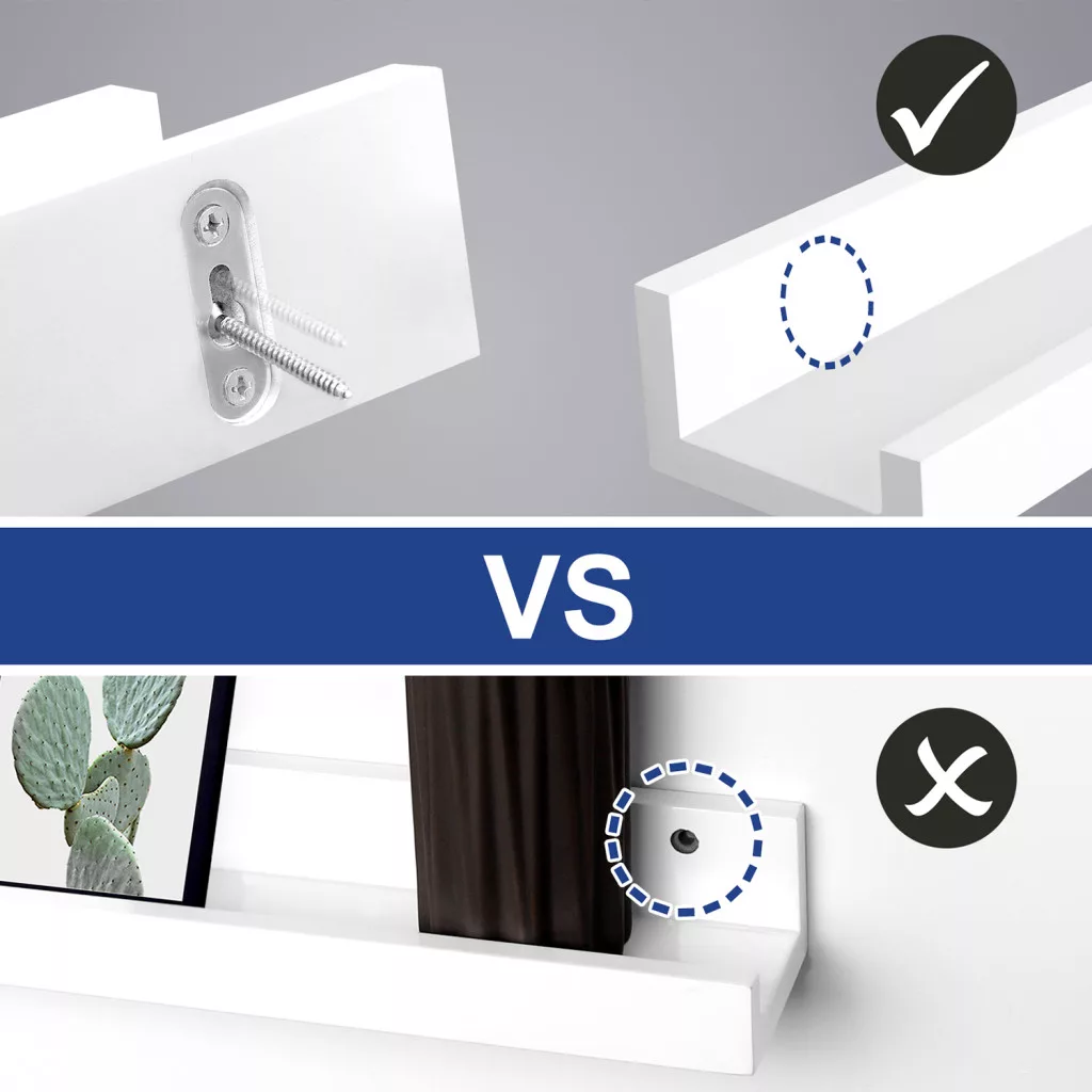 • Lebegő dizájn láthatatlan felfüggesztéssel: A hátsó fém akasztók láthatatlanok, így a polc elegánsan lebeg a falon, modern megjelenést biztosítva