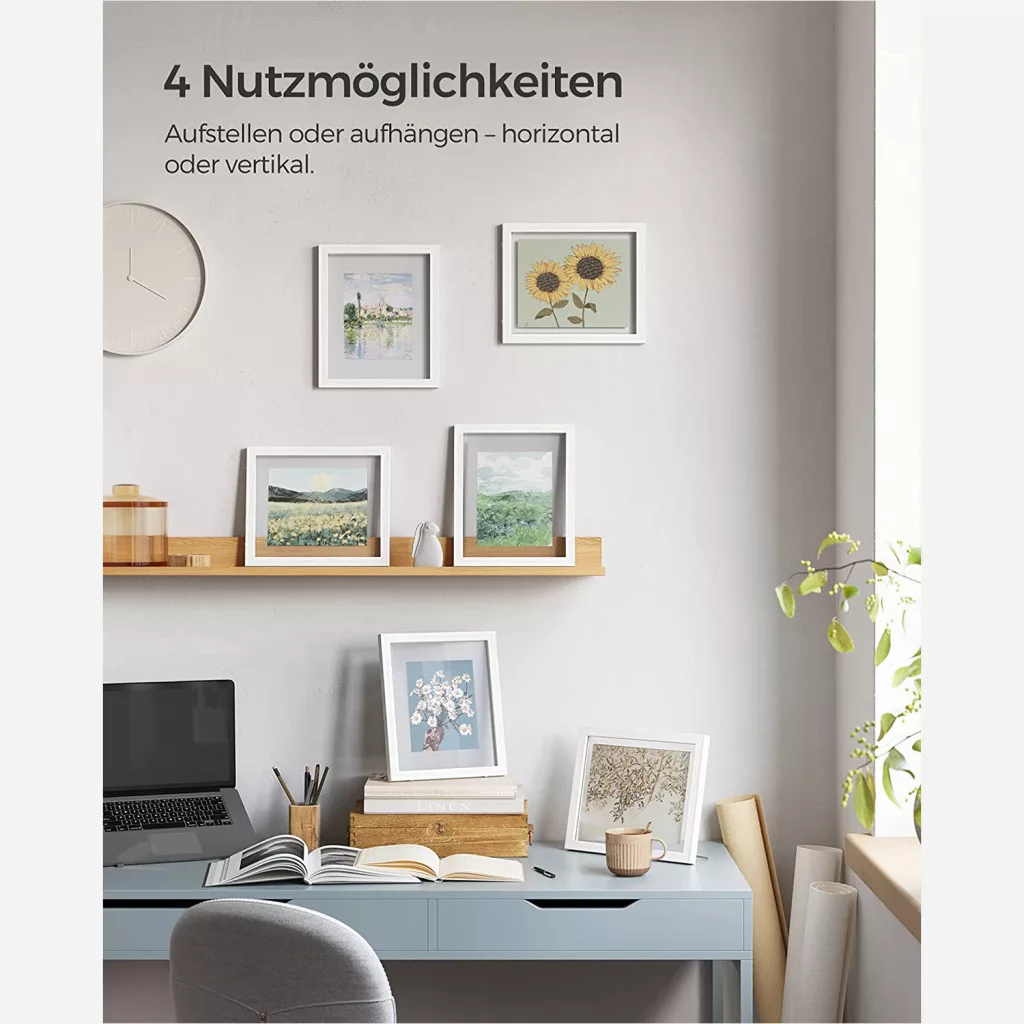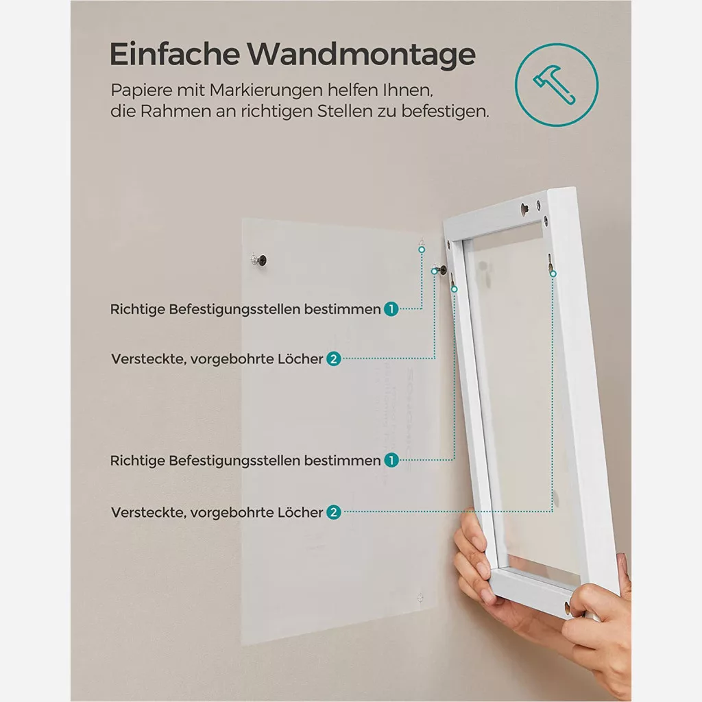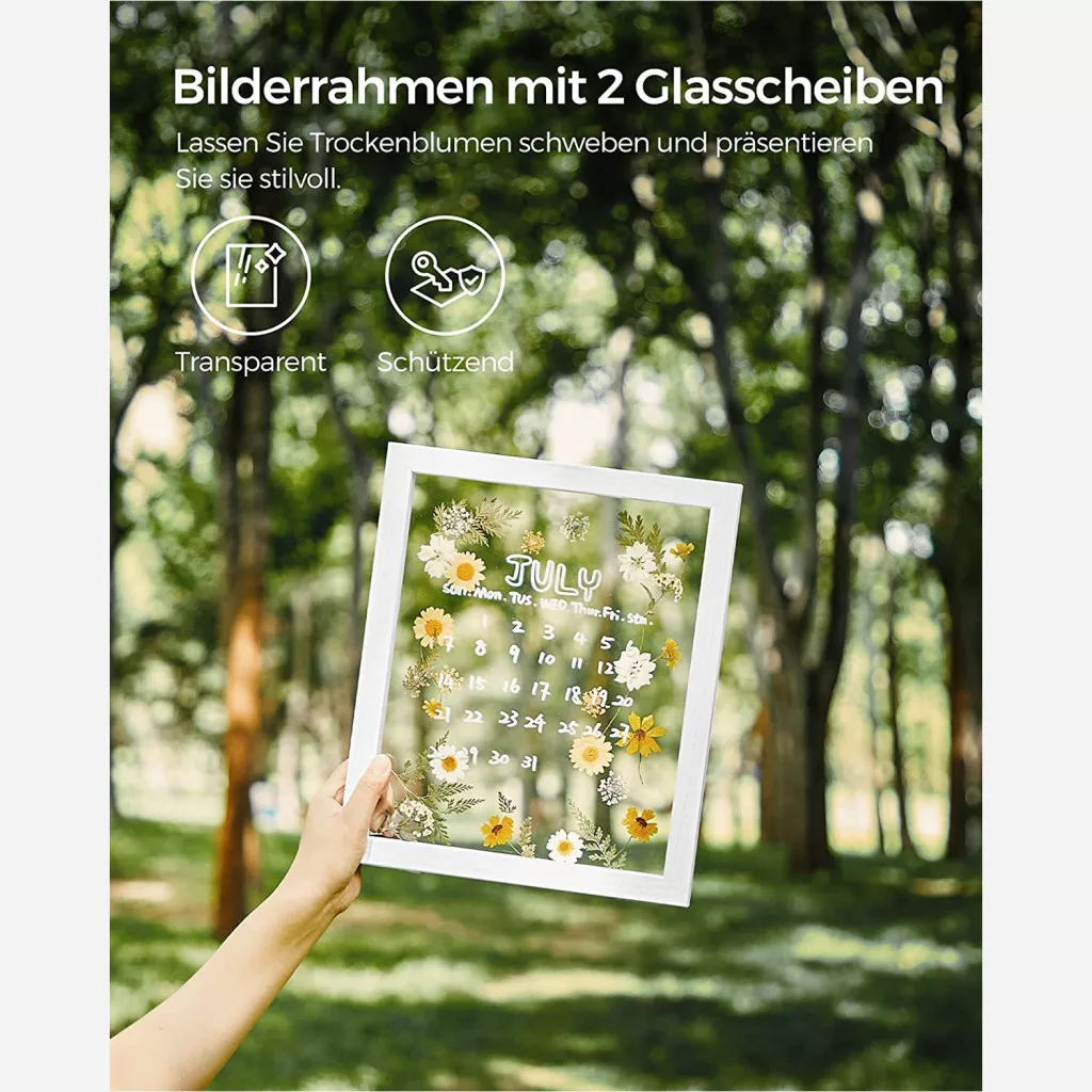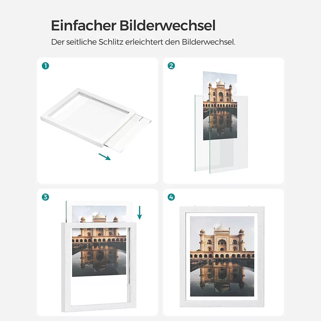 A SONGMICS képkeret szett egyedülálló módon mutatja be kedvenc fényképeit két kristályüveg lap között, ami lebegő hatást kelt. A tartós MDF keretszerkezet és a minőségi üveglapok tökéletes védelmet nyújtanak a fotóknak, miközben elegáns megjelenést biztosítanak.