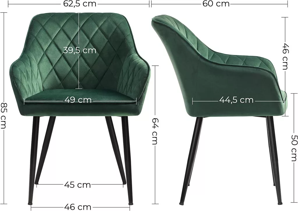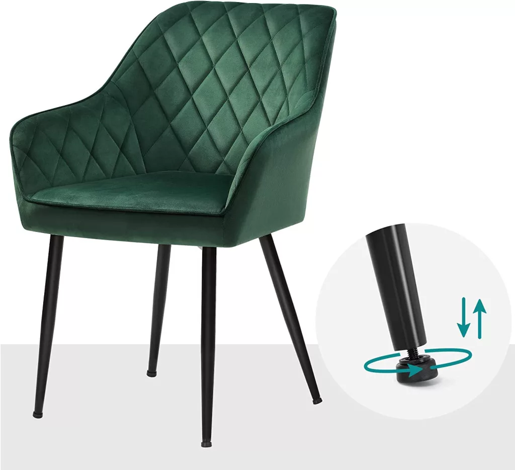 SONGMICS Luxus Bársony Étkezőszék Zöld Steppelt Kárpitozással