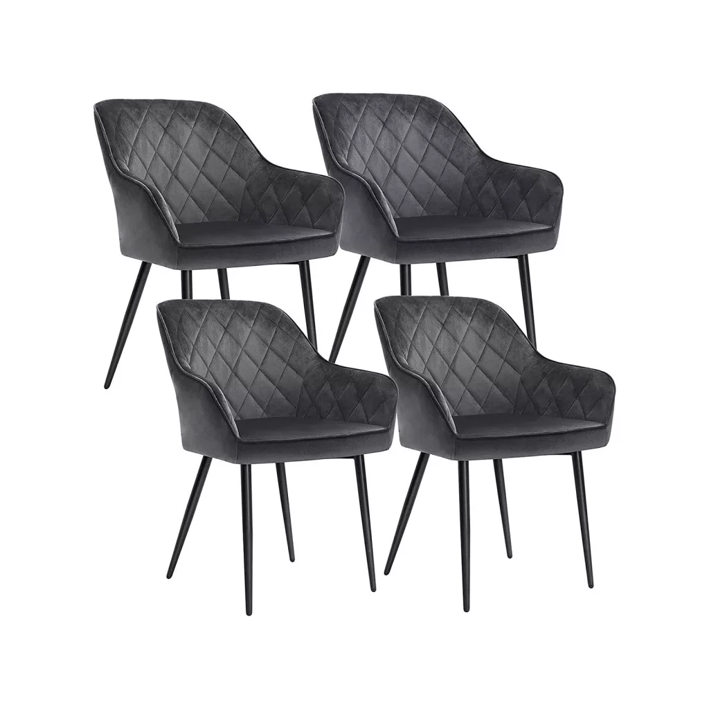 Elegáns, kényelmes 4 darabos bársony székszett széles ülőfelülettel és karfákkal, tökéletes választás étkezőbe vagy nappaliba.
