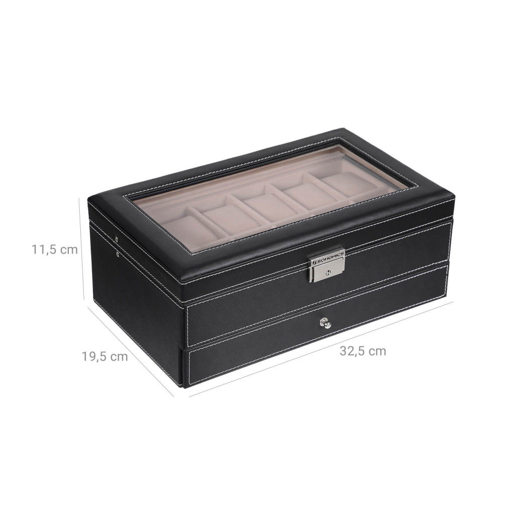 SONGMICS Luxus Óratartó Doboz Üvegfedéllel 12 Órához Fekete