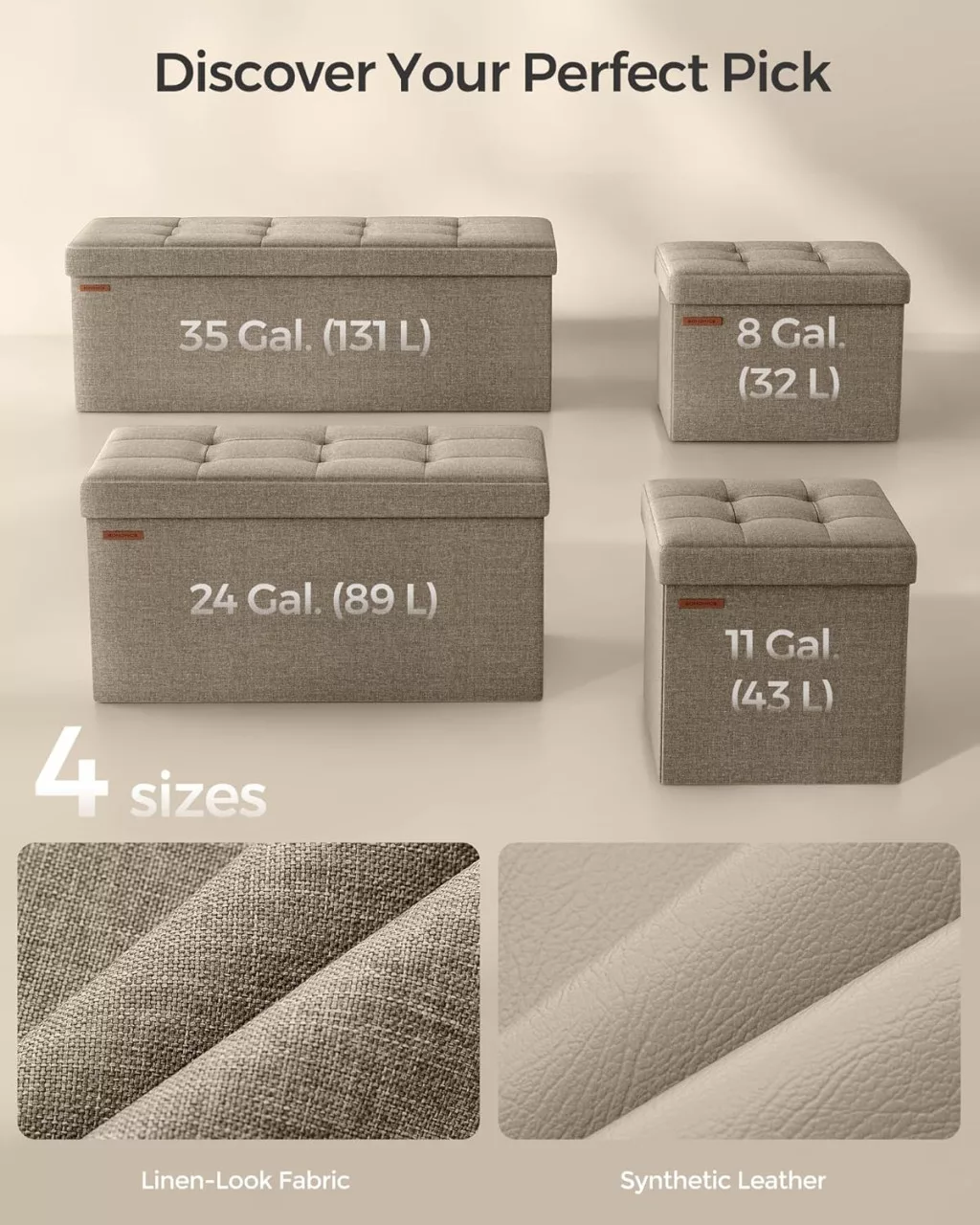 A SONGMICS MAZIE tárolópad ötvözi az elegáns megjelenést a praktikus funkcionalitással. A lenvászon hatású kárpitozás és a steppelt kialakítás modern eleganciát kölcsönöz, míg a nagy tárolókapacitás segít rendben tartani otthonát. A pad pillanatok alatt összeállítható és szükség esetén könnyen összecsukható.