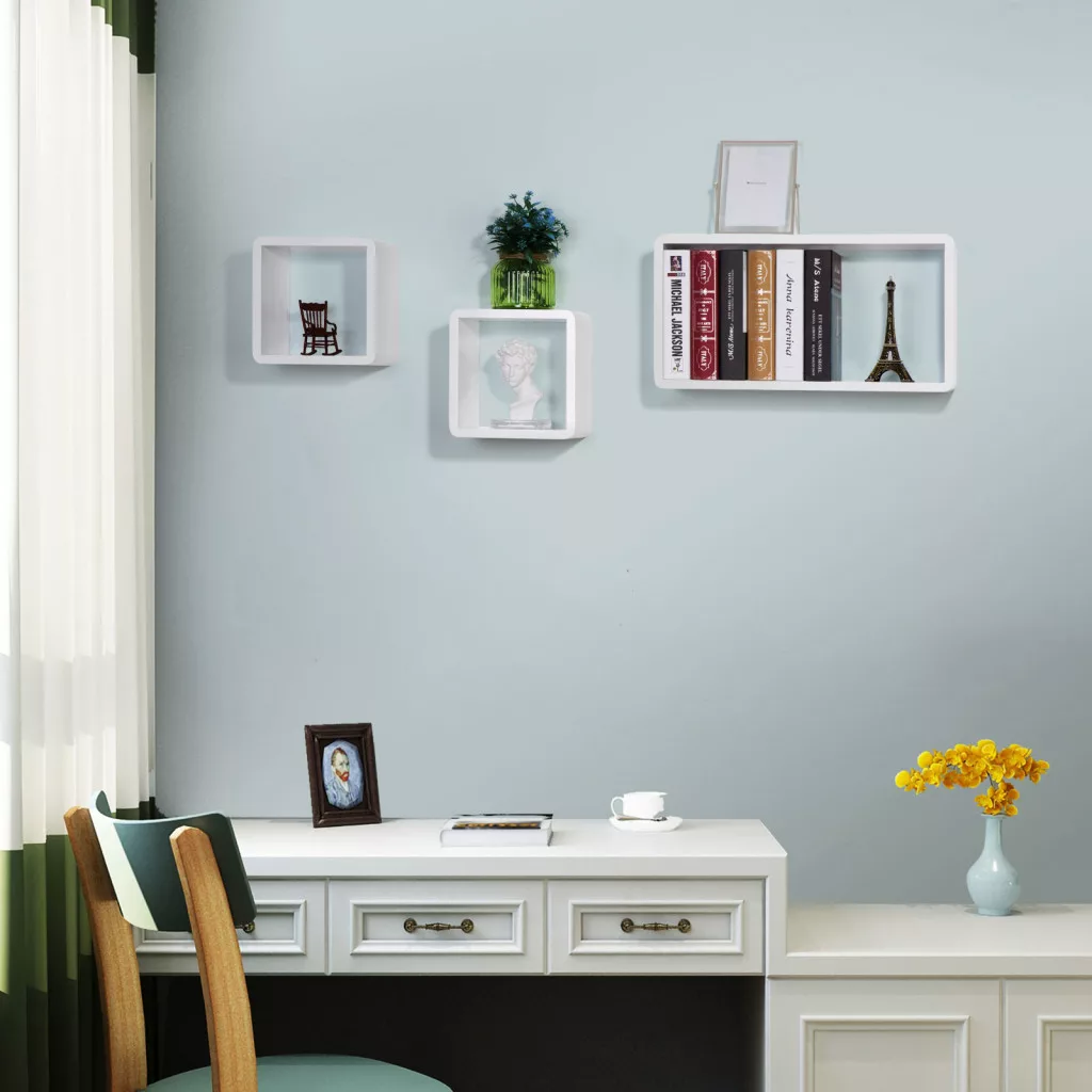 SONGMICS Magasfényű Fali Polc Szett Fehér MDF Tárolókockák