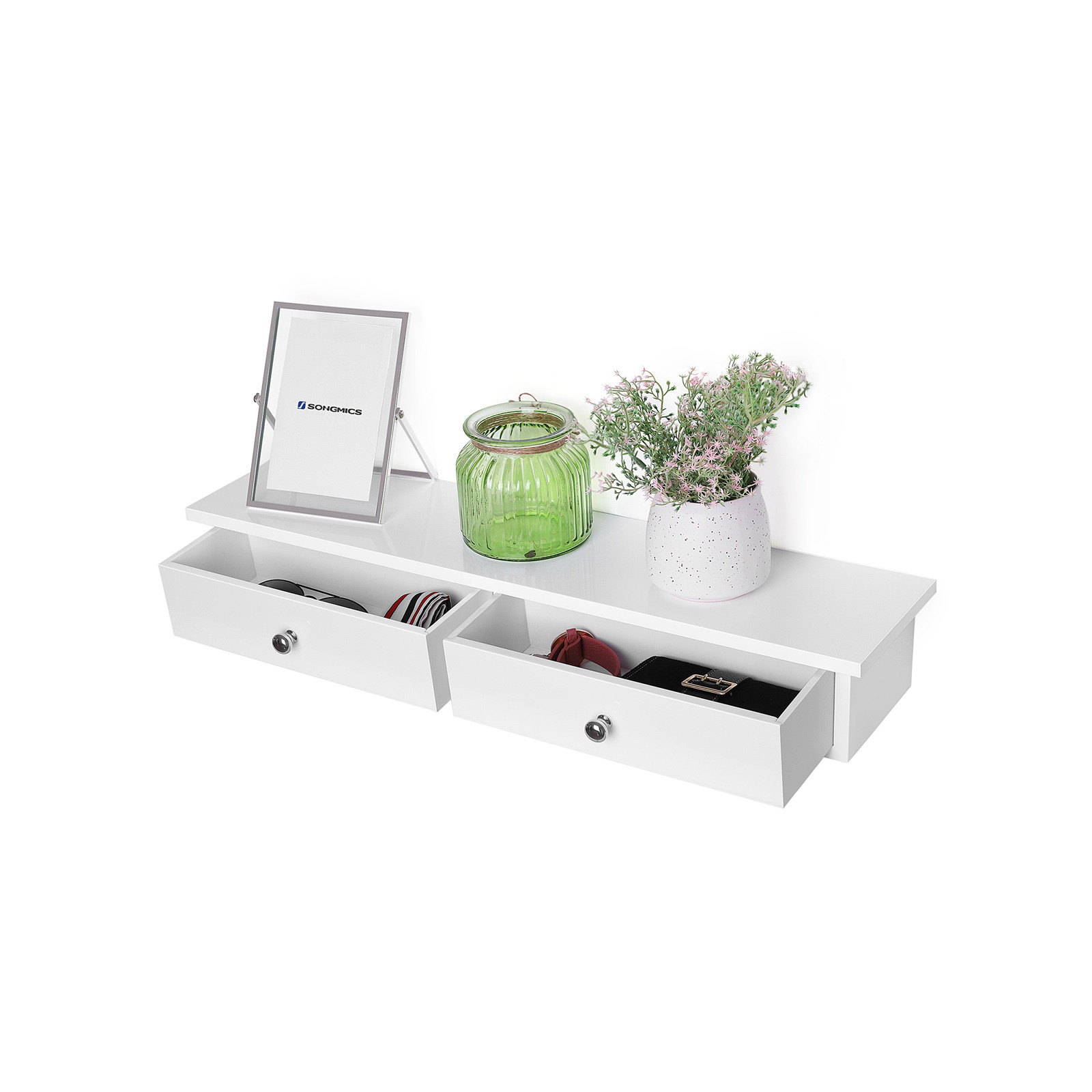 SONGMICS Magasfényű Fehér Fali Polc 2 Fiókkal