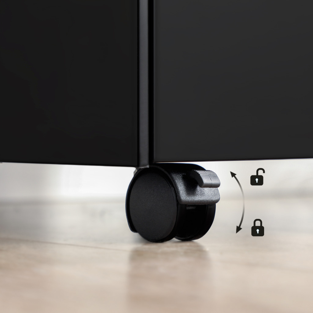 A beépített öt görgő (kettő fékezhető) lehetővé teszi a konténer egyszerű mozgatását, így rugalmasan alakíthatja irodai terét. Az előszerelt kivitel időt takarít meg Önnek, csak a kerekeket és fogantyúkat kell felszerelnie.