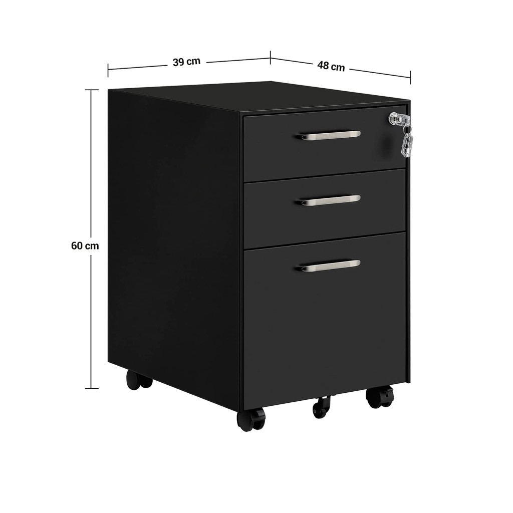 SONGMICS Mobil Irodai Görgős Konténer Acél Zárható 3 Fiókos Fekete