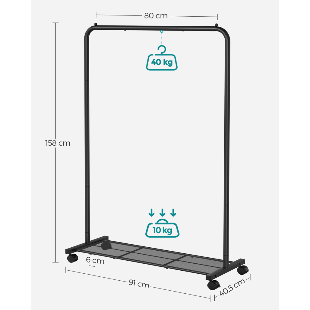 SONGMICS Mobil Ruhaállvány Acél Tárolópolccal Fekete