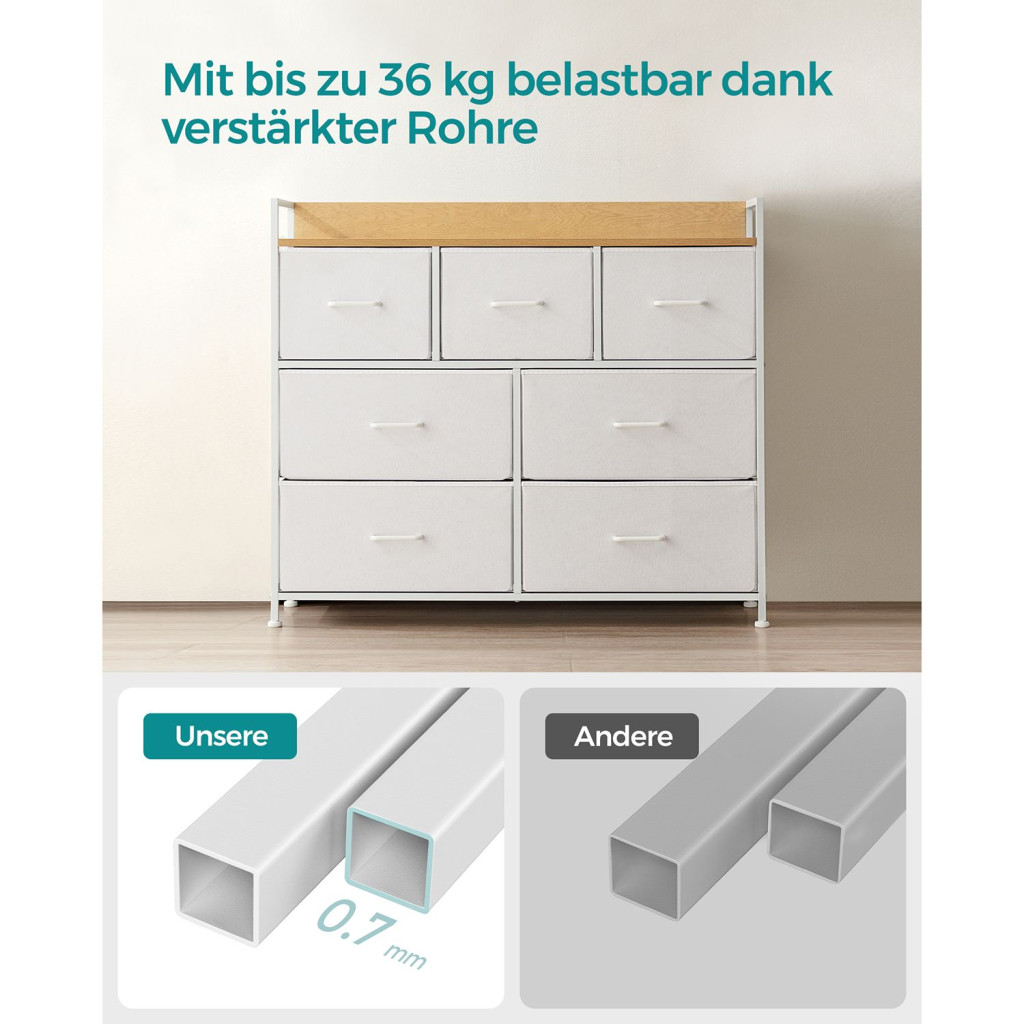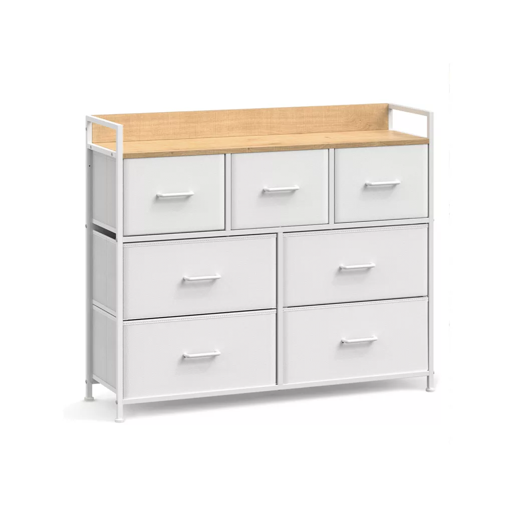 SONGMICS Modern 7-Fiókos Tárolószekrény Fehér-Fa Kombinációban