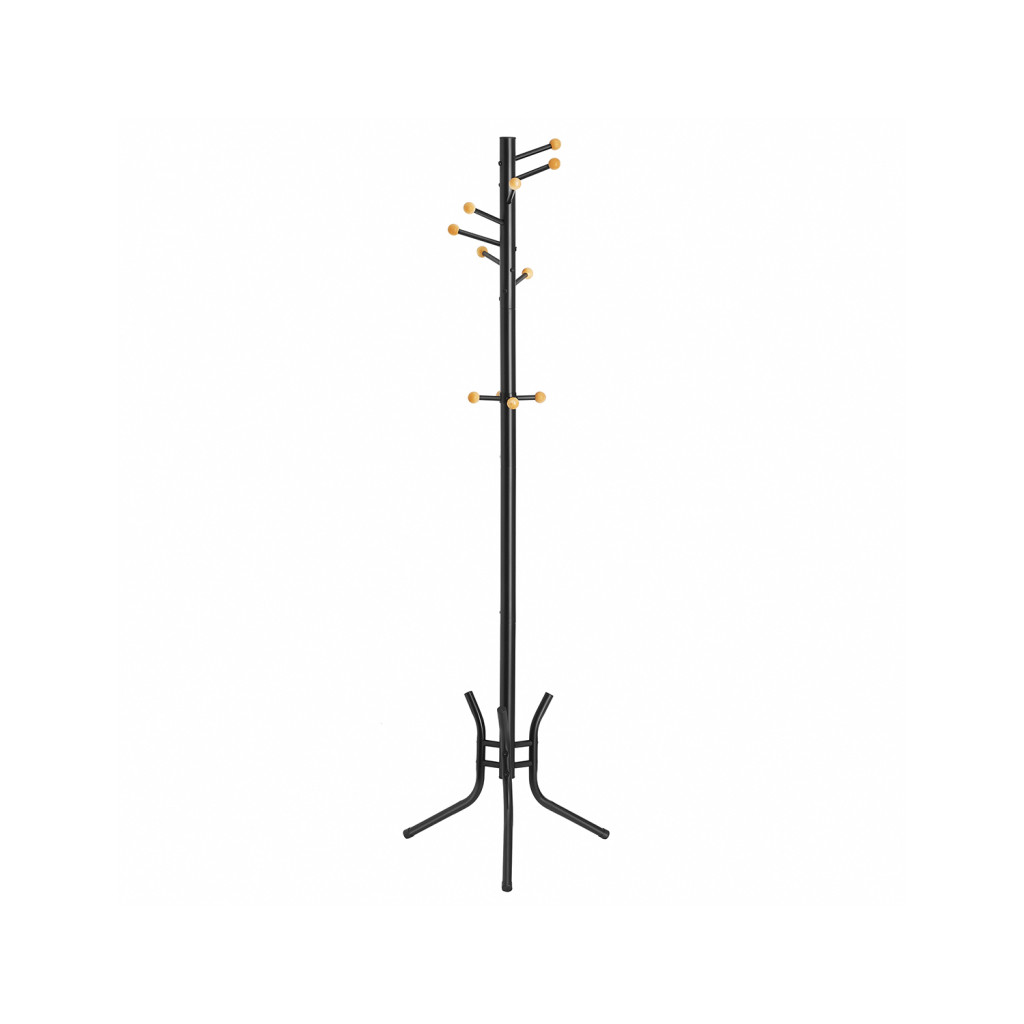 Elegáns, szabadon álló ruhafogas 11 fa végződésű akasztóval, amely tökéletes megoldást nyújt kabátok, táskák és kiegészítők rendezett tárolására.