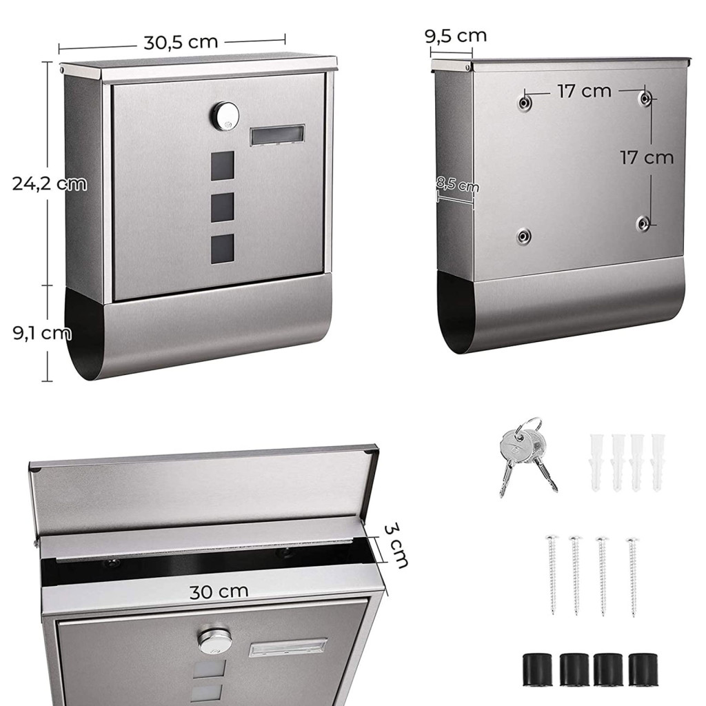Ez a modern kialakítású SONGMICS postaláda ötvözi az elegáns megjelenést a praktikus funkcionalitással. A minőségi rozsdamentes acélból készült szerkezet rézmagos zárral és védőkupakkal rendelkezik, amely maximális biztonságot nyújt a küldemények számára. A három kémlelőablak lehetővé teszi a beérkezett levelek gyors ellenőrzését.