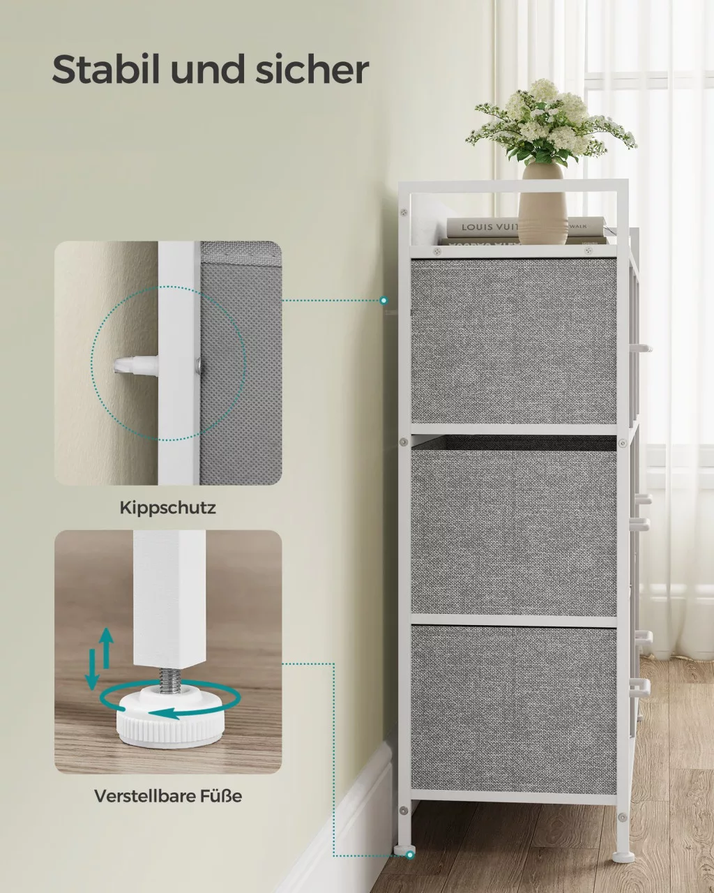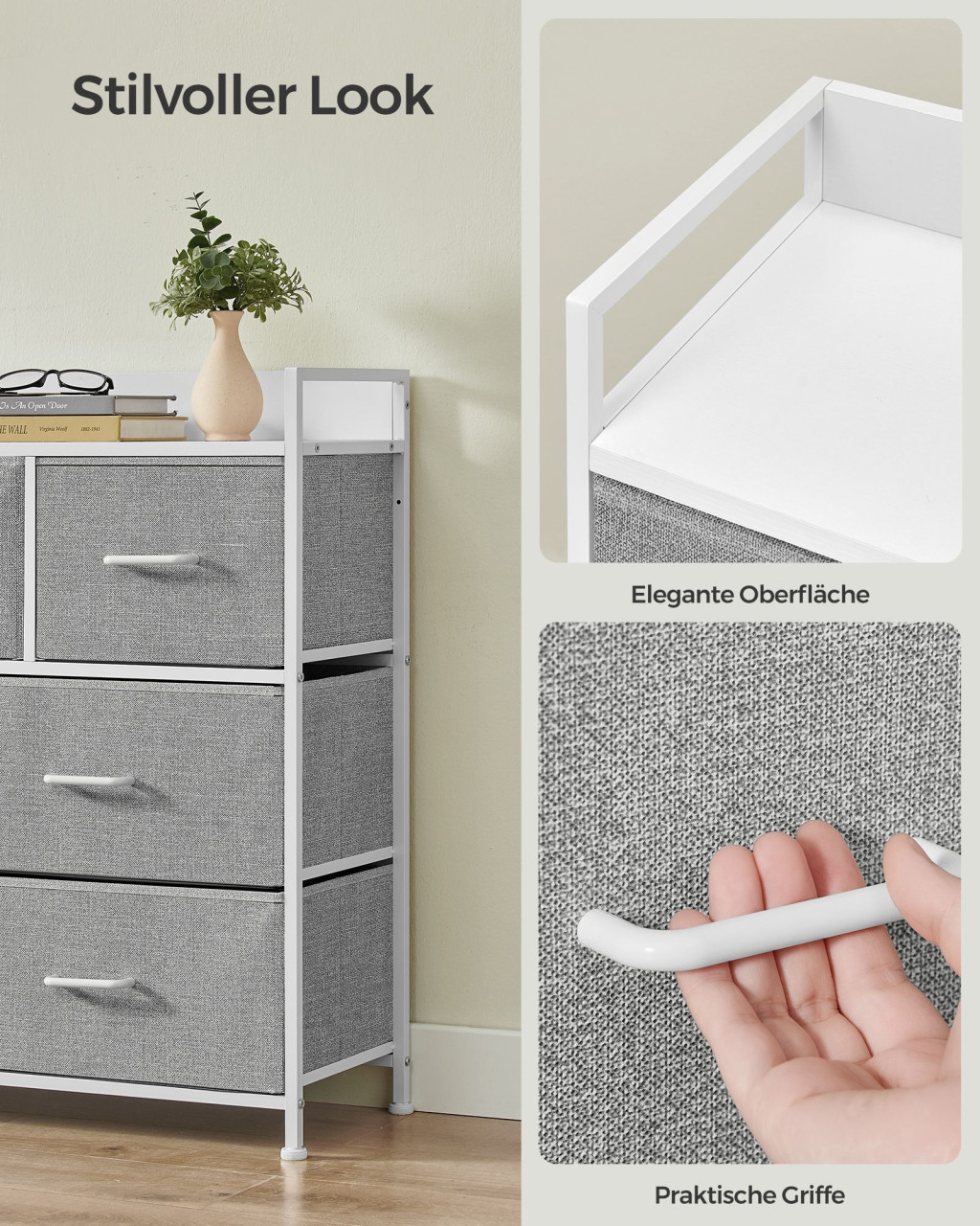 SONGMICS Modern Textil Fiókos Szekrény 7 Fiókkal Fehér-Szürke Fémvázzal