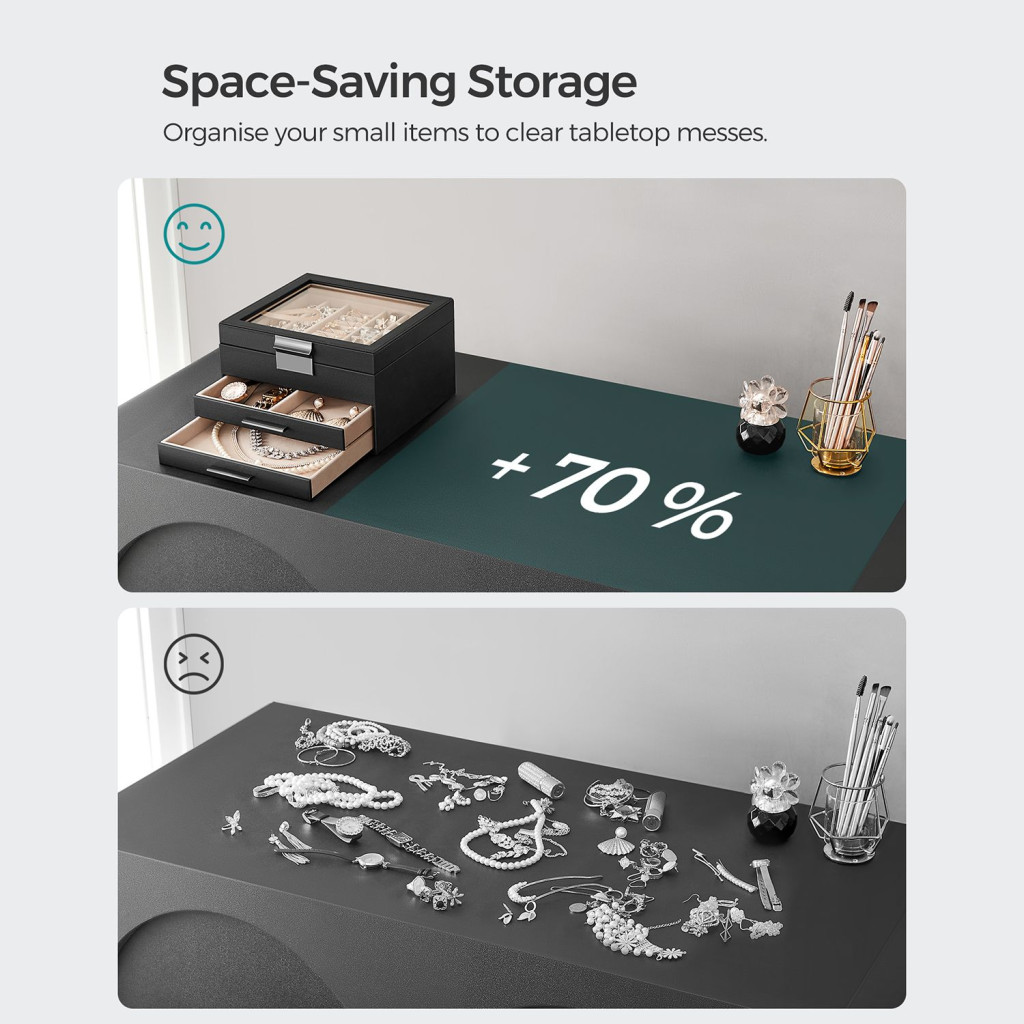 SONGMICS Modern Üvegfedeles Ékszertartó Doboz Fekete-Ezüst