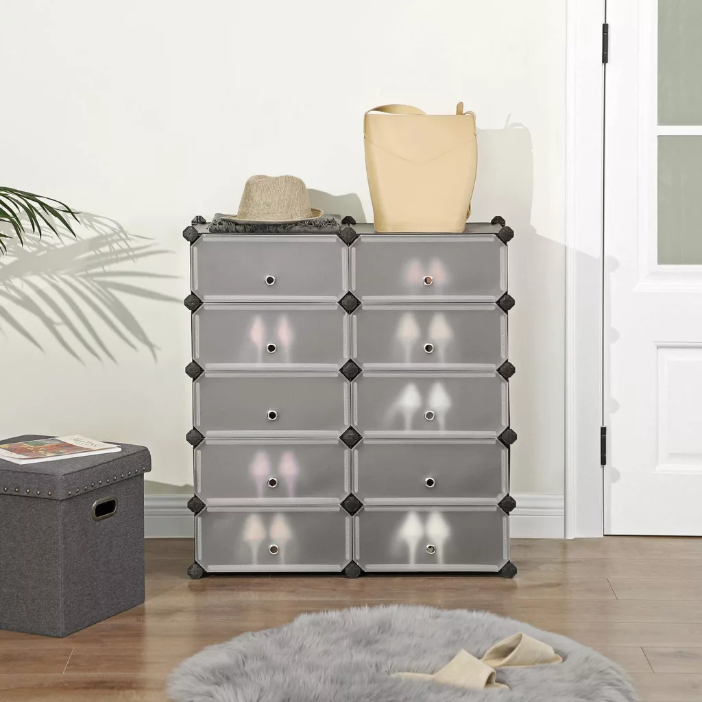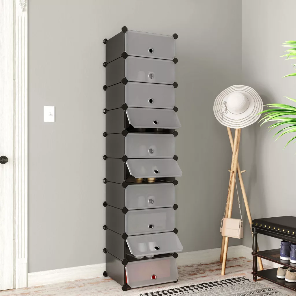 SONGMICS Moduláris Cipősszekrény 10 Rekesszel Fekete