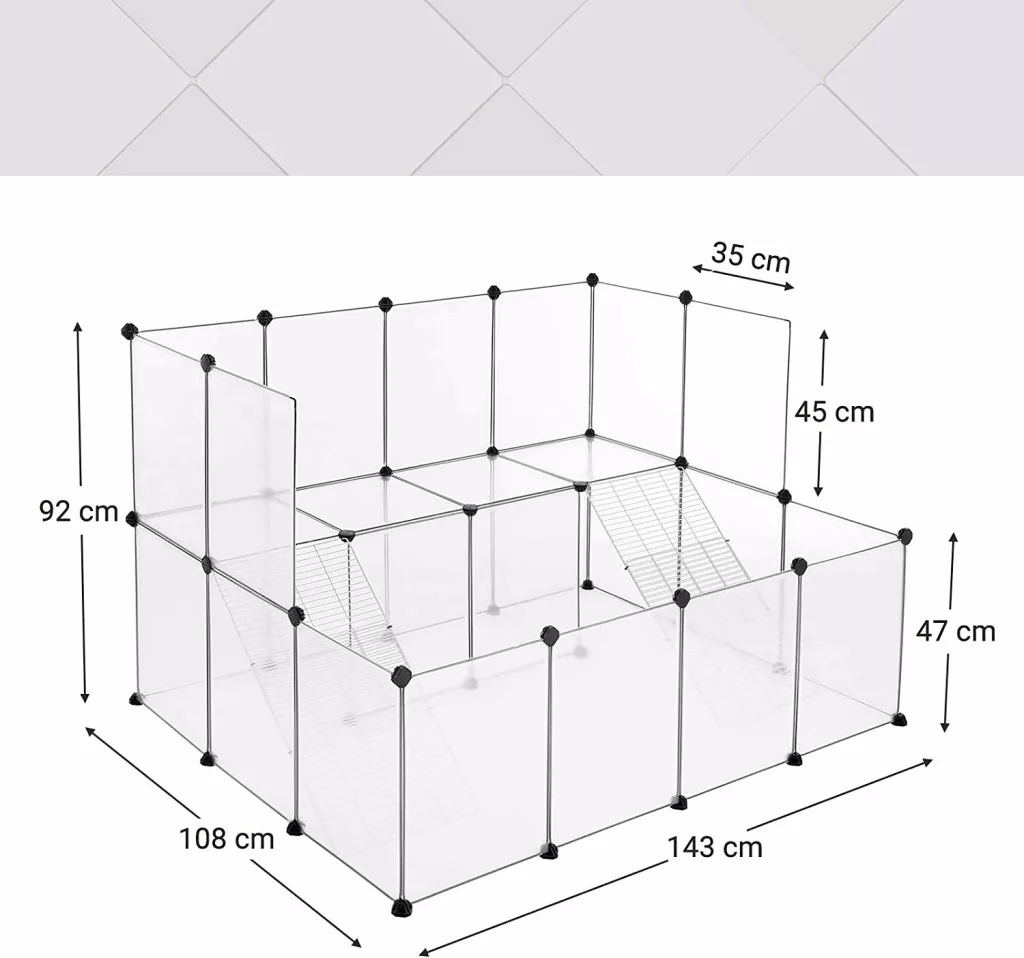 Ez a modern, átlátszó panelekből álló moduláris ketrec valódi paradicsomot teremt kisállata számára. A többszintes kialakítás erkéllyel és fémrács lépcsőkkel lehetővé teszi, hogy kedvence szabadon mozoghasson és felfedezze környezetét, miközben Ön mindig szemmel tarthatja őt.